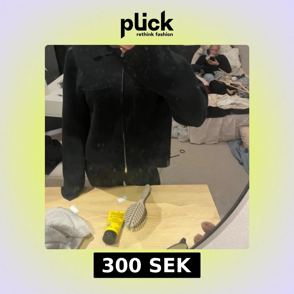 Säljer en svart cardigan jacka med dragkedja framtill och två stora fickor på bröstet. Jackan har en enkel, clean look och är långärmad med rak passform. Perfekt för dig som gillar stilrena och minimalistiska plagg.
