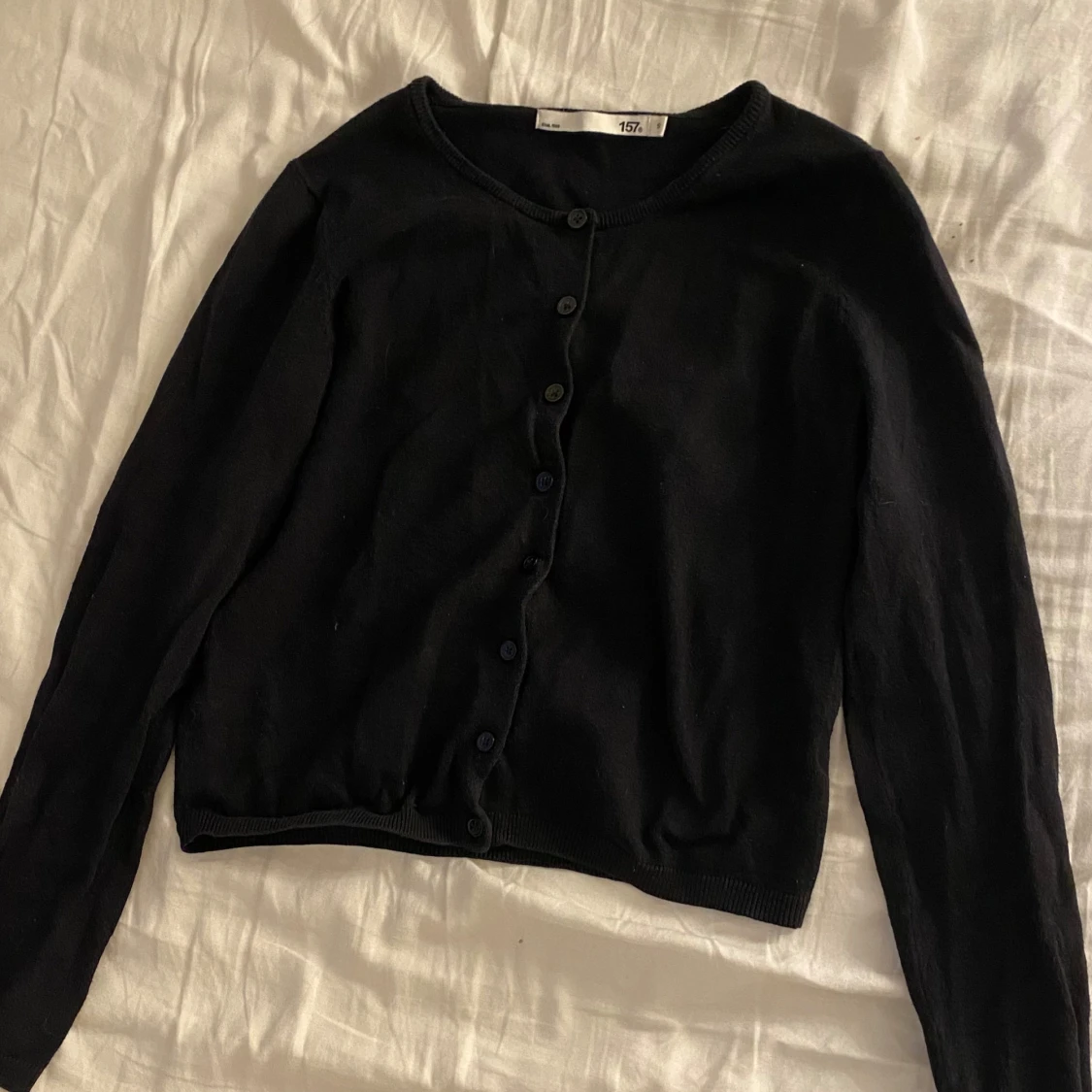 Säljer en stilren svart kofta från Lager 157. Den har långa ärmar och knappar framtill. Perfekt för lager-på-lager under kyligare dagar. Passar till många olika outfits!