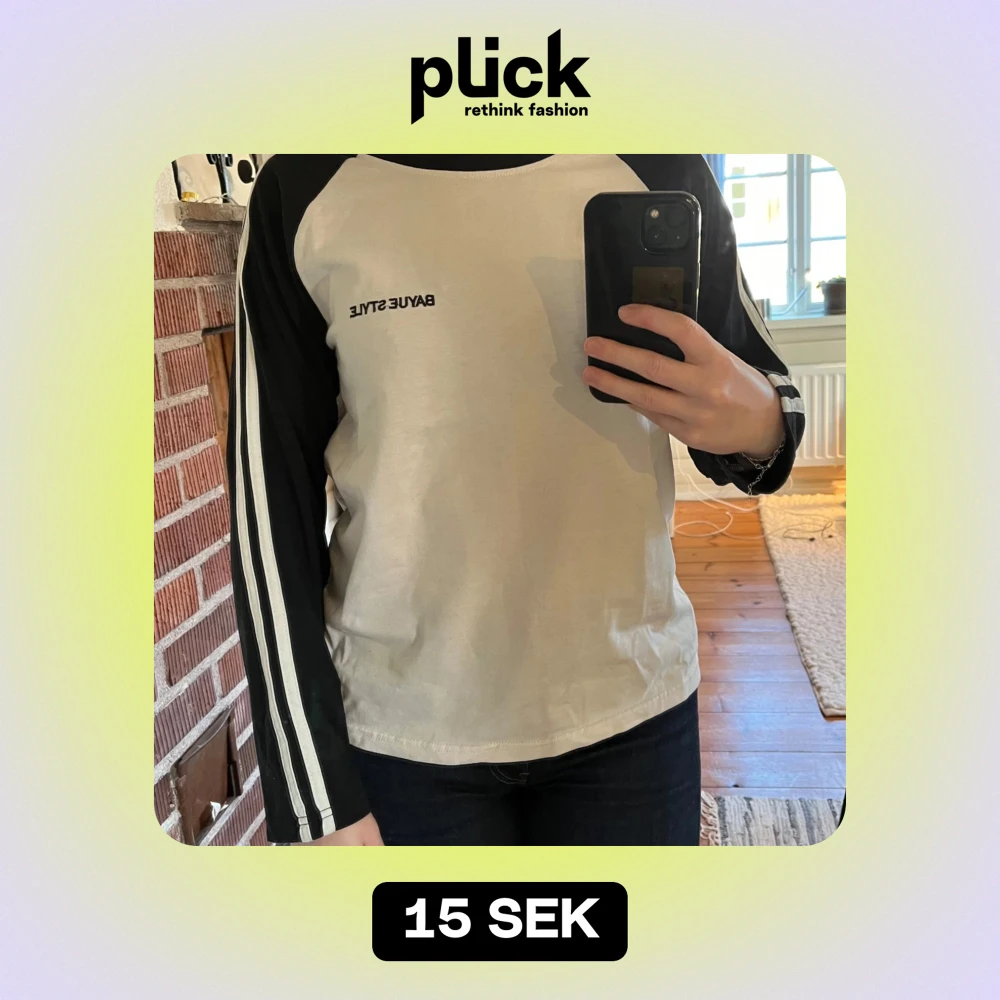 En långärmad tröja med ränder längs armarna, köpt från Shein för länge sen men förvånansvärt bra kvalitet Uppskattningsvis storlek S Plagget är använt men välskött
