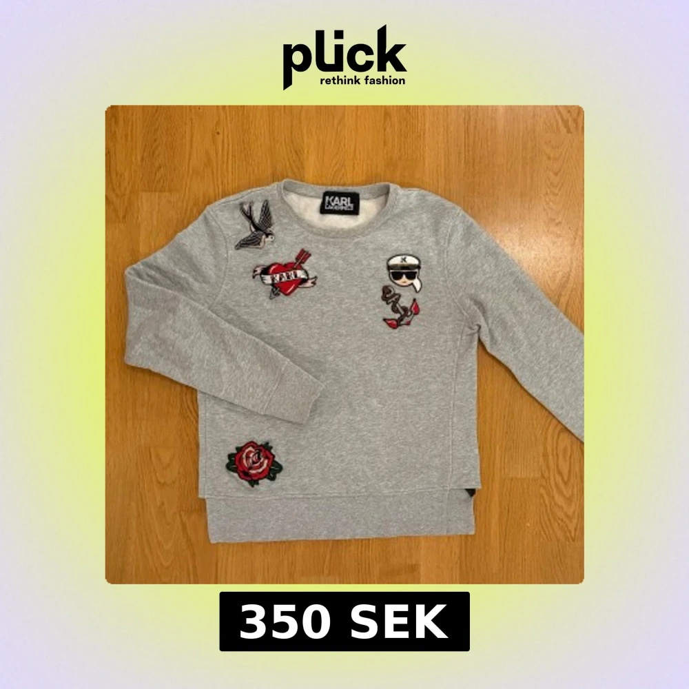 Grå tröja från Karl Lagerfeld med påsydda detaljer. Köpt på Arkivet