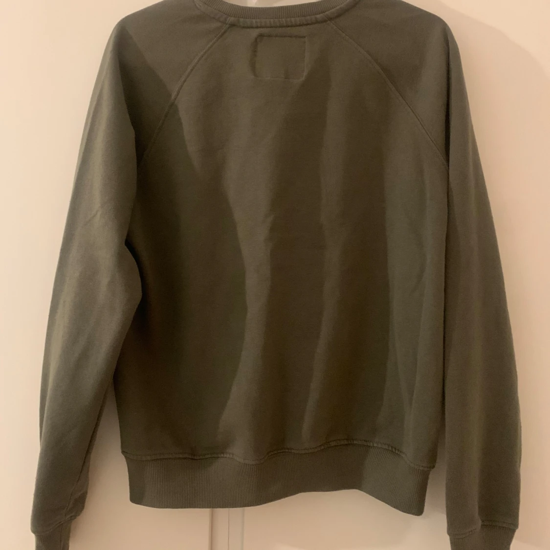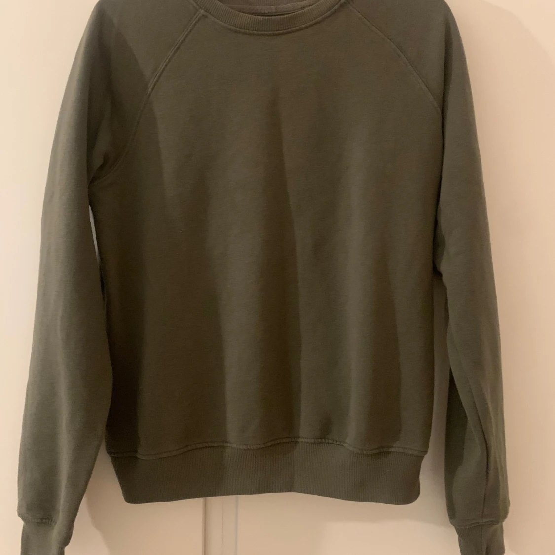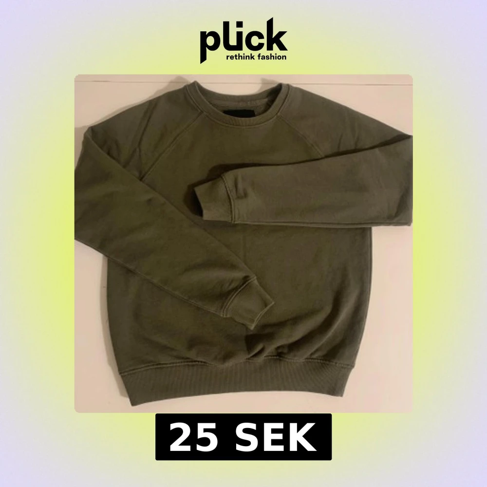 Säljer en stilren olivgrön sweatshirt från lager 157. Tröjan har en klassisk rund halsringning och långa ärmar med ribbade muddar. Perfekt för en avslappnad look.