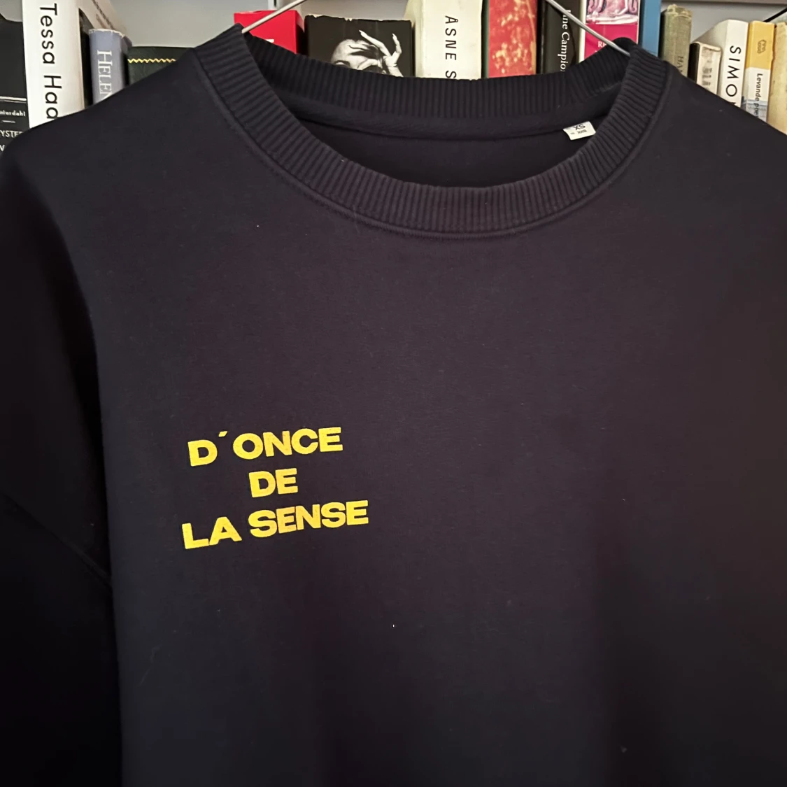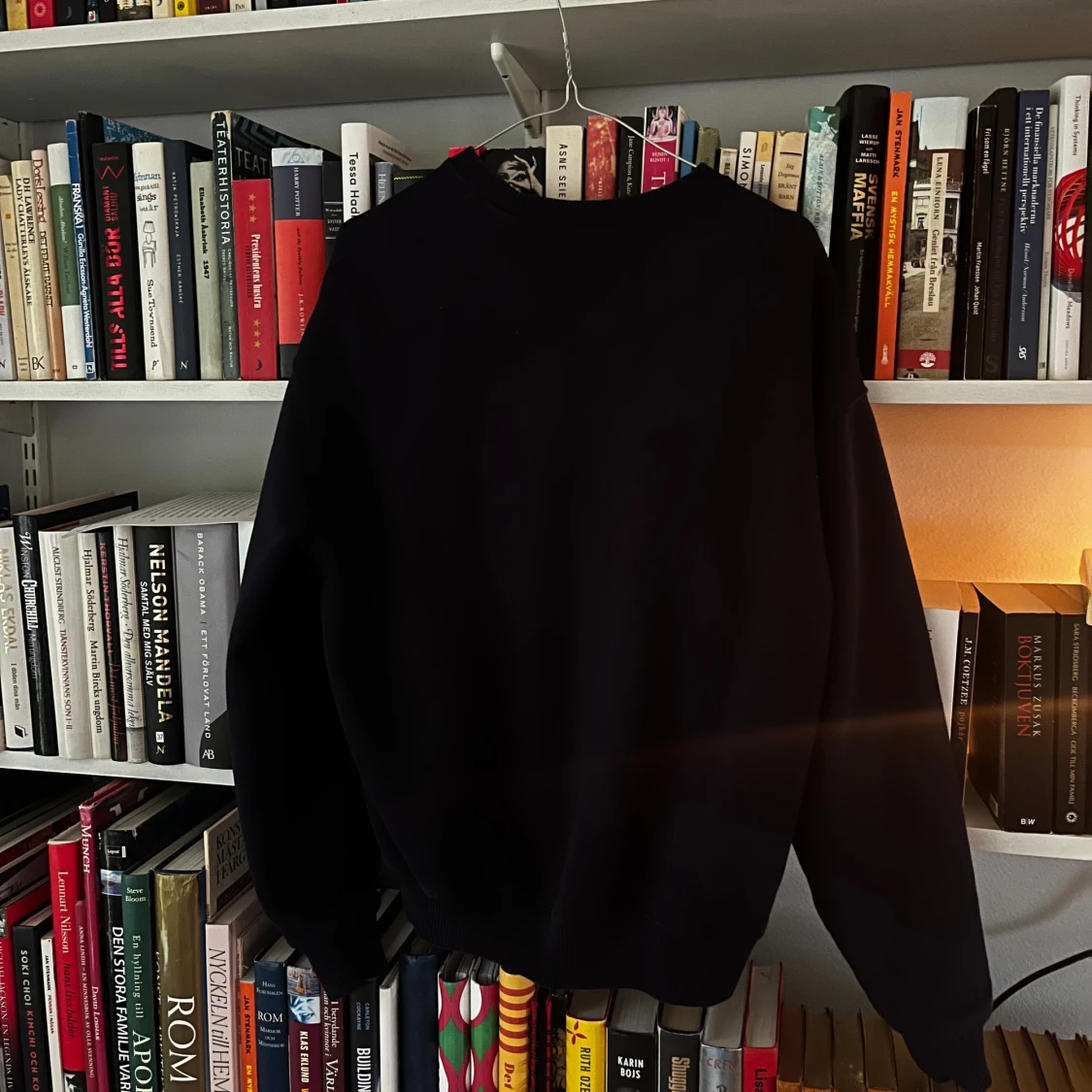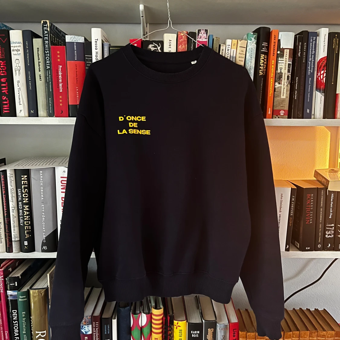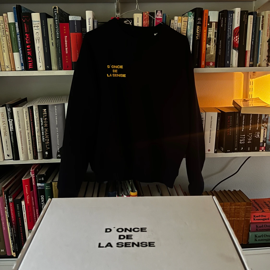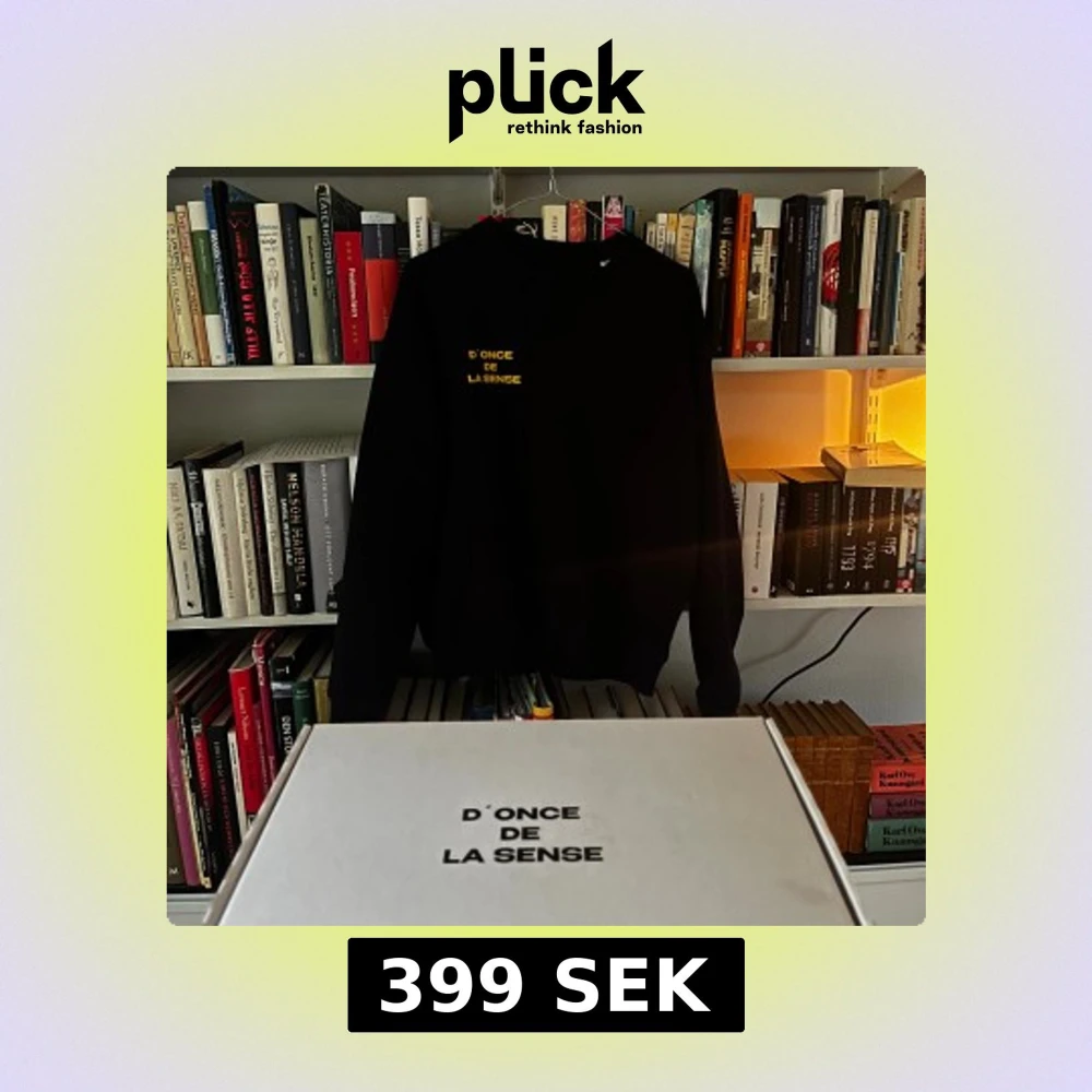 Riktigt skön d’once de la sense sweatshirt. Den är mörkblå, ser lite mörkare ut på bilden än vad den faktiskt är. Låda kommer med!Tröjan är i storlek XS/XXS, passar de som är mellan 169-173 ungefär. Priset kan diskuteras!