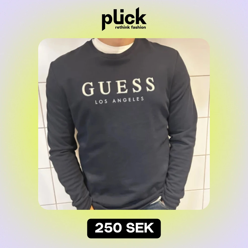 Säljer en stilren svart tröja från Guess med texten 'Guess Los Angeles' tryckt på framsidan. Tröjan har långa ärmar och en normal passform, perfekt för både vardag och fest. Superbekväm och lätt att matcha med olika outfits!
