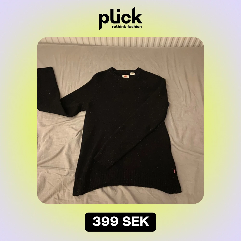 Säljer en snygg svart stickad tröja från Levi's i storlek M (passar även S bra då den är lite åt de tightare hållet). Tröjan har ett diskret mönster med små färgprickar och är perfekt för både höst och vinter. Jättesnygg och prisvärd. Nypris ligger runt 800-900kr