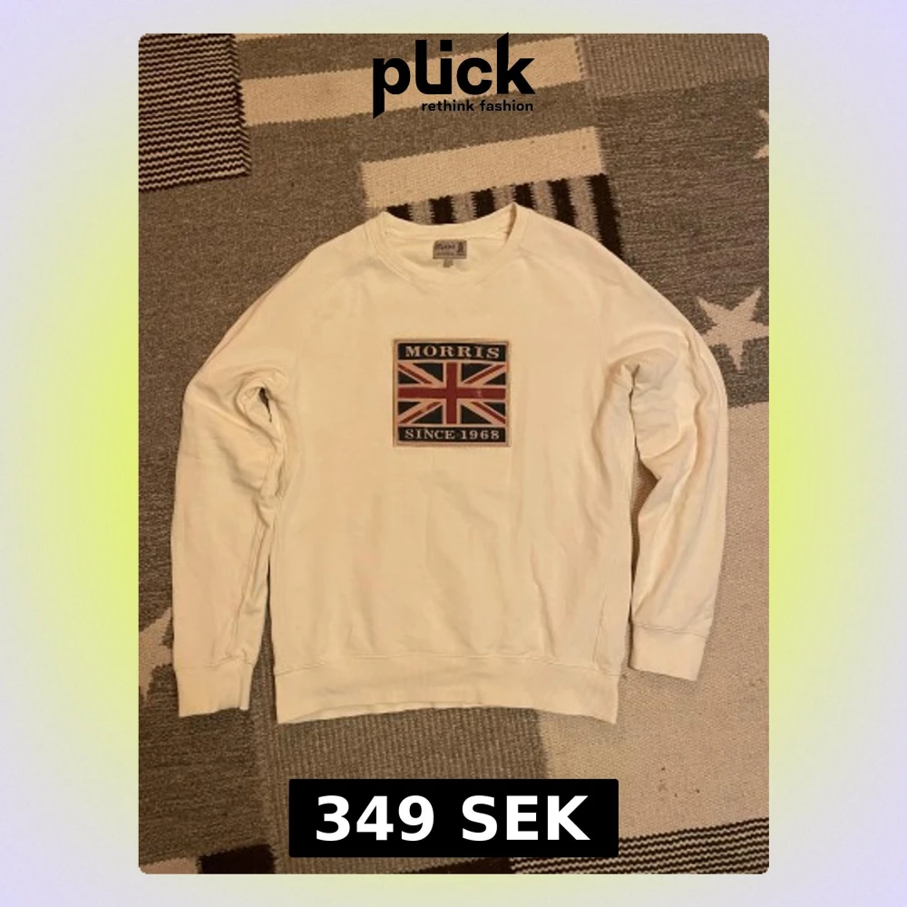 Vit sweatshirt från Morris med Union Jack-tryck och texten på bröstet. Tröjan har en normal passform och är enkel att matcha.