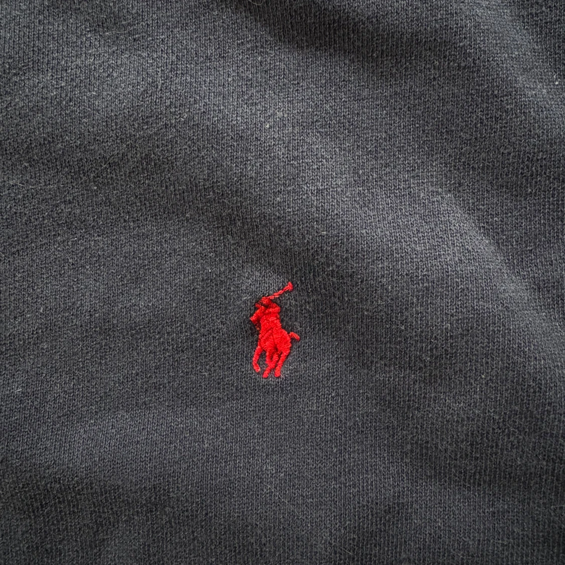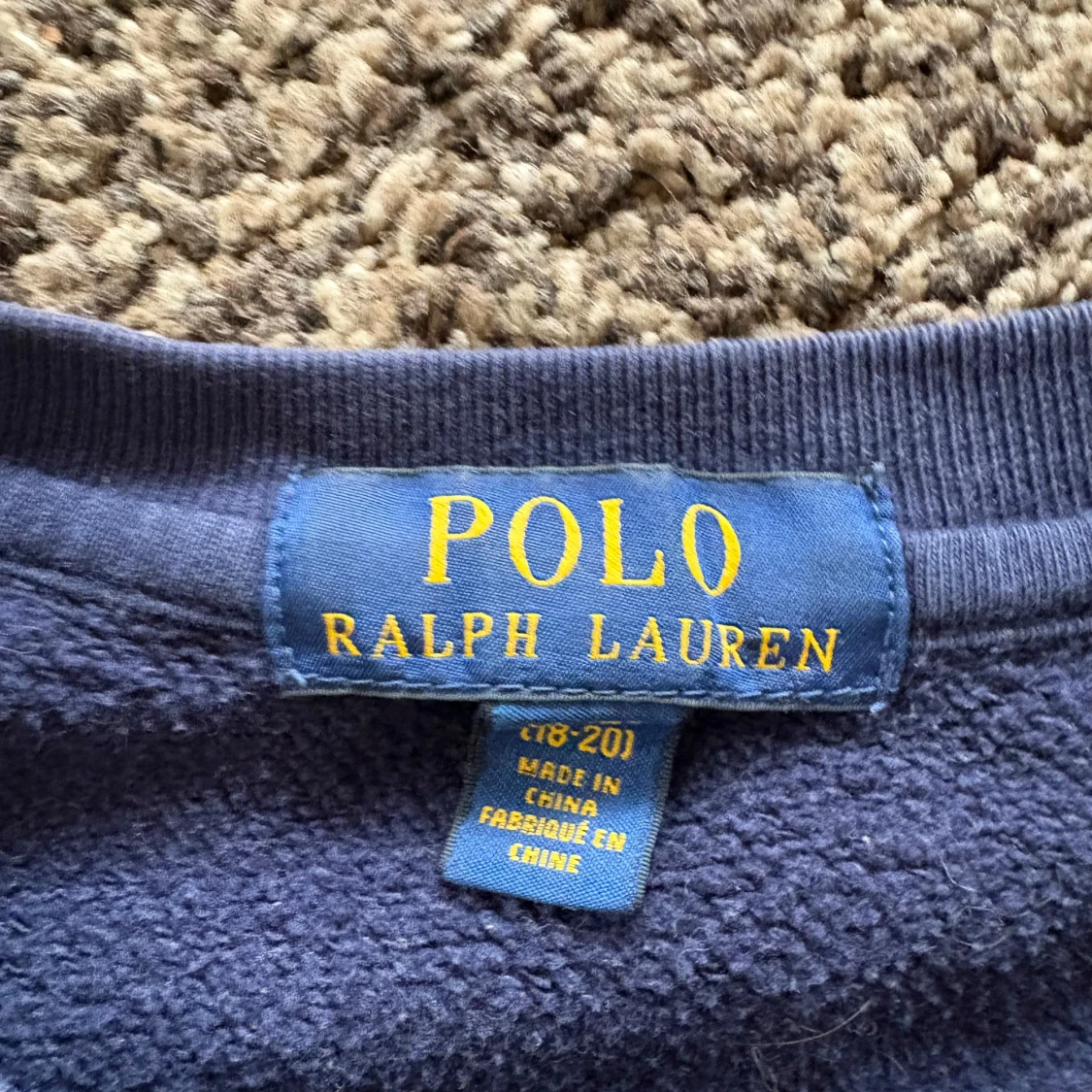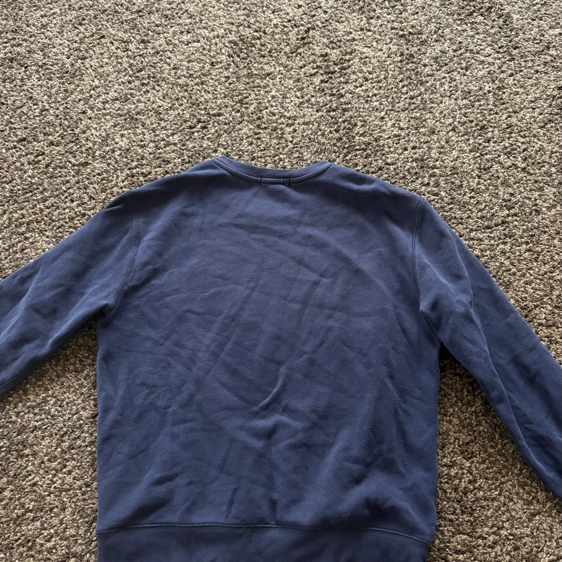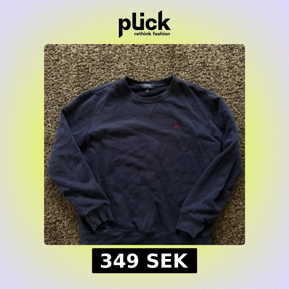 Säljer en mörkblå sweatshirt från Polo Ralph Lauren med klassisk rund hals och långärmad passform.