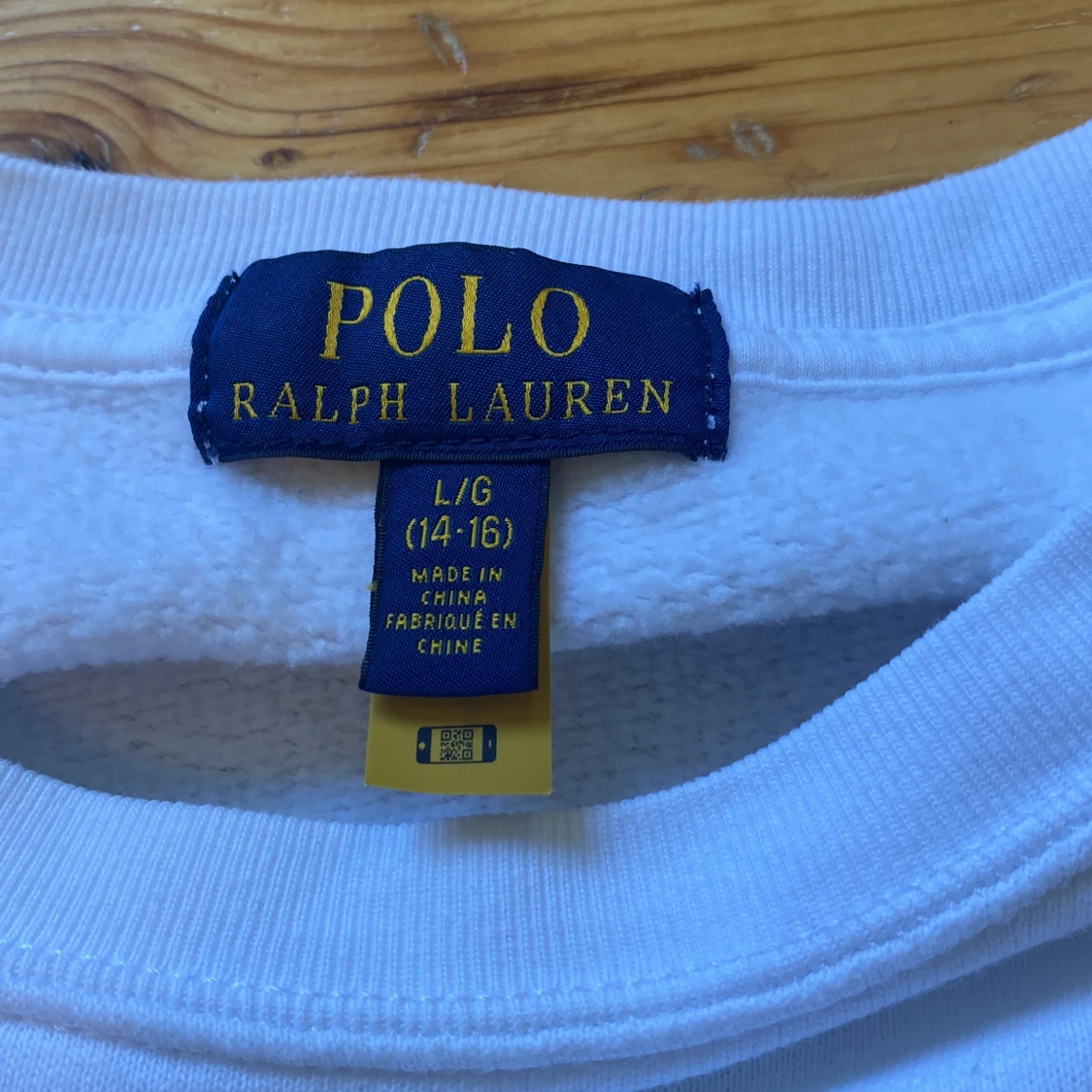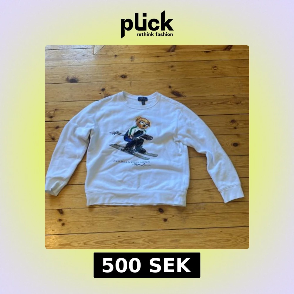 Vit sweatshirt från Polo Ralph Lauren med ikoniska Polo Bear som åker skidor tryckt på bröstet. Tröjan har rund hals, långa ärmar och ribbade muddar. Perfekt för dig som gillar klassisk stil med en twist. Materialet är mjukt och skönt bomull.