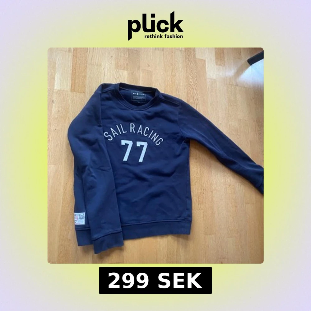 Tjena, Säljer en mörkblå sweatshirt från Sail Racing med texten 'SAIL RACING 77' på framsidan. Stl M passar mig som är 181💯kom gärna med funderingar och fråga🙌Bra skick👏