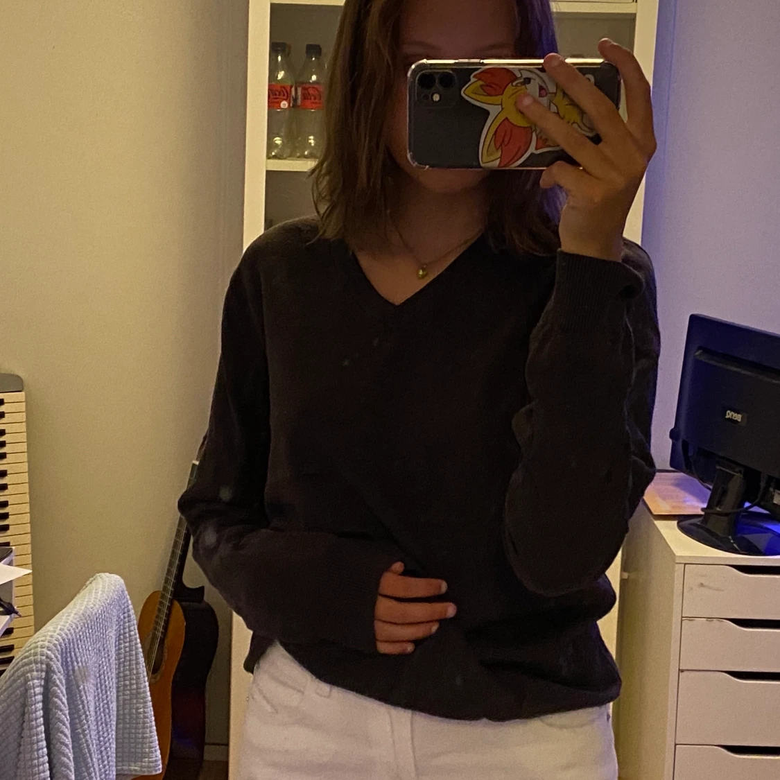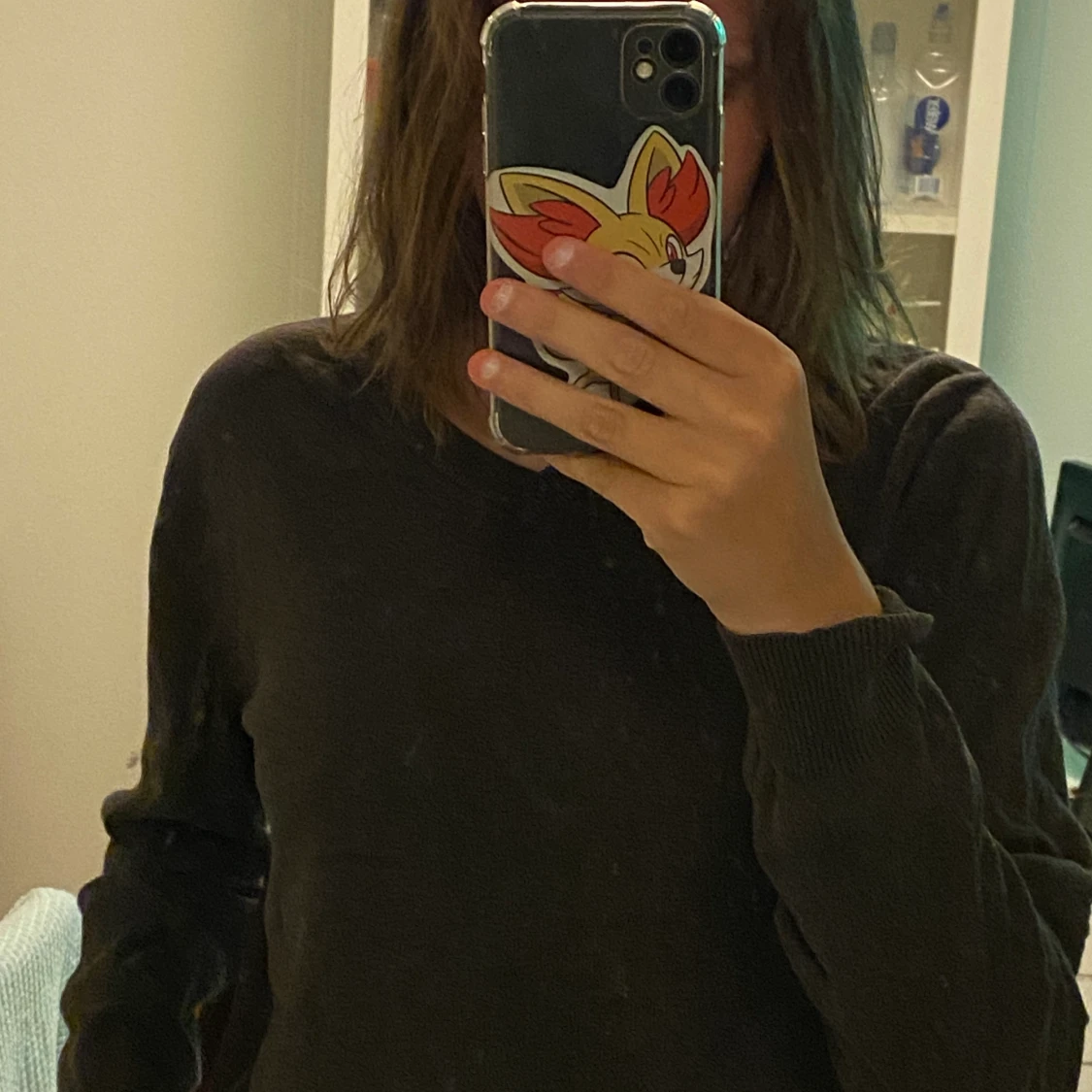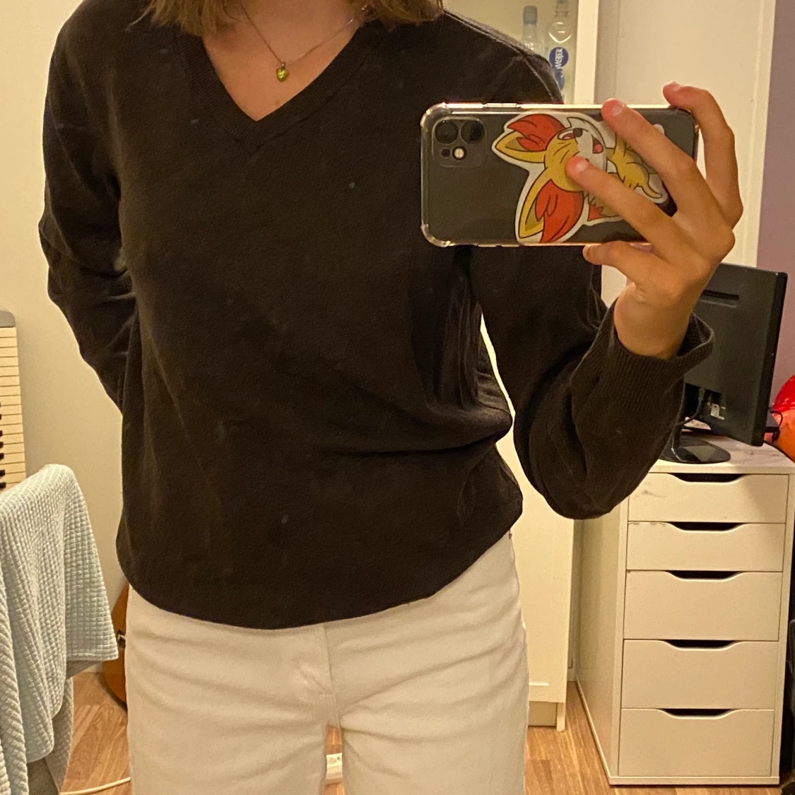 En stickad brun tröja som jag köpte på Plick för ungefär 3 månader sedan. Jag glömde bort att jag hade den hemma och är tyvärr inte min stil längre.