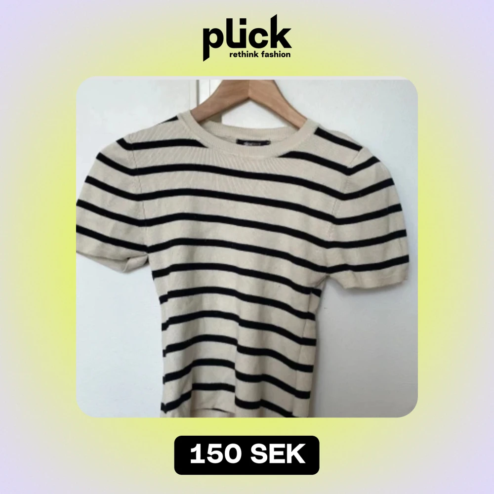 Säljer en superfin randig topp från Gina Tricot i storlek M. Den är beige med svarta ränder och har korta ärmar. Perfekt för vår och sommar! Toppen är croppad och ger en snygg look till jeans eller kjol. Använd få gånger och i mycket bra skick.