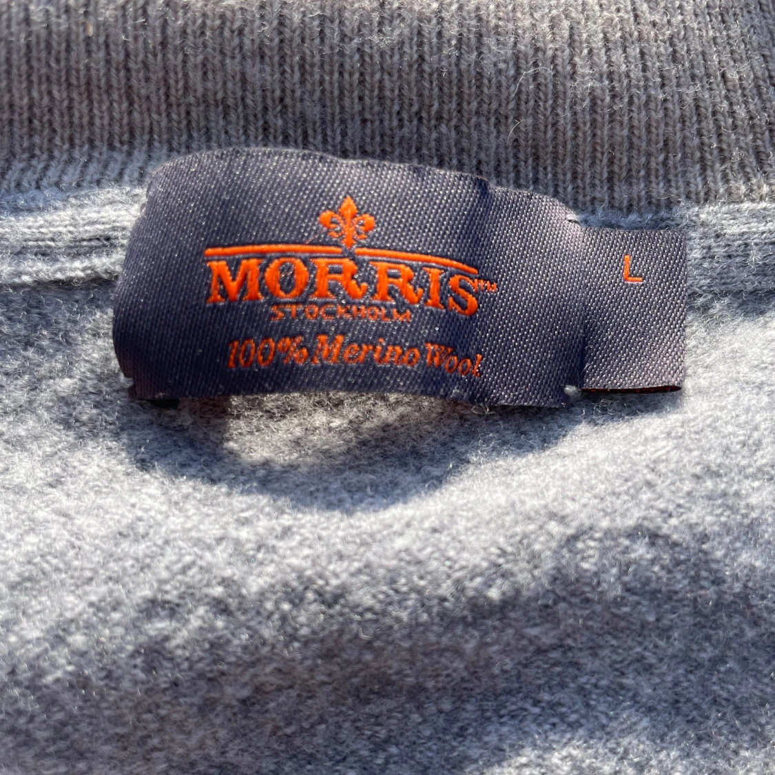 Säljer en stilren grå tröja från Morris i 100% merinoull. Perfekt för våriga dagar med sin mjuka och varma känsla. Tröjan är i bra skick. Skriv till mig vid frågor eller funderingar💛