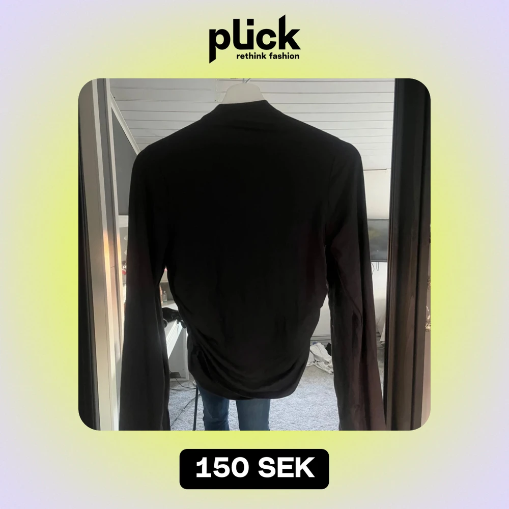 säljer denna mörkgråa långärmade tajta tröja, den är indragen i magen och har en liten krage. Aldrig använd, prislappen är kvar.