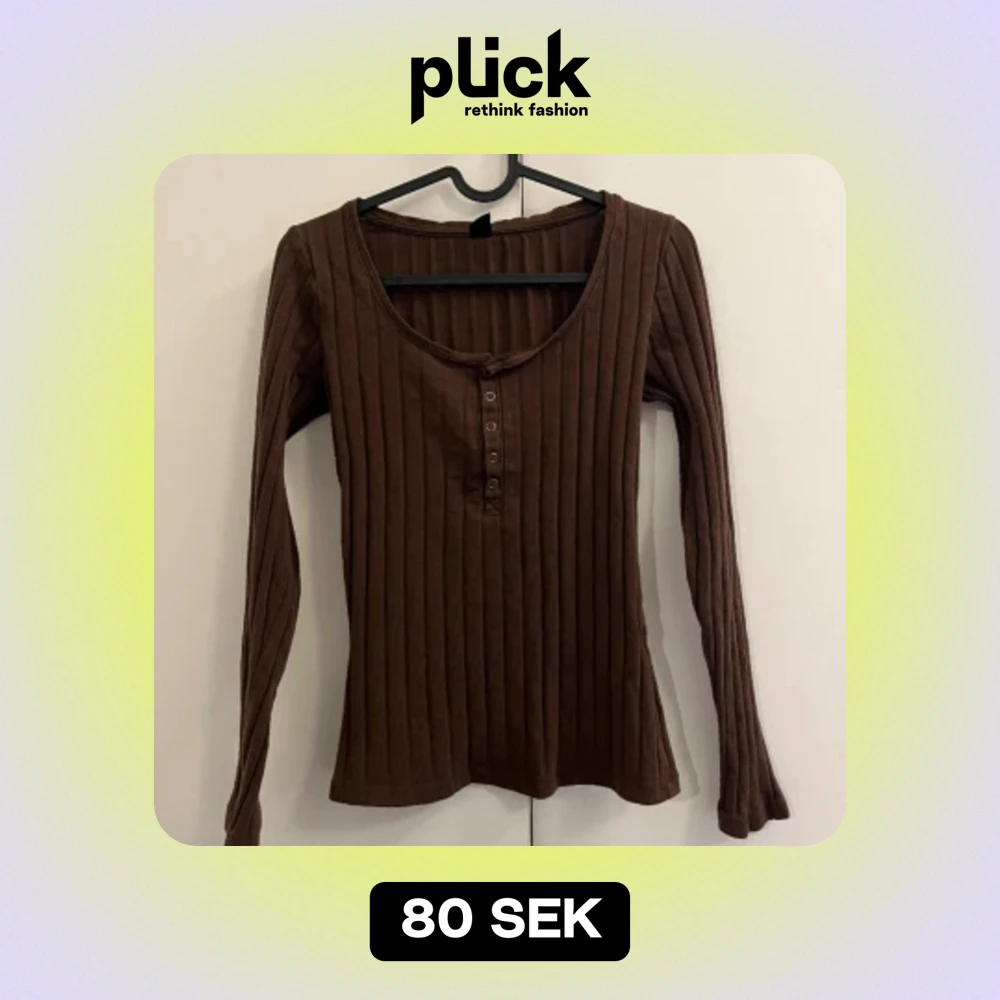 Brun stretchig tröja som sitter fint på kroppen. Materialet är mjukt och har inga brister. Använder den bara inte