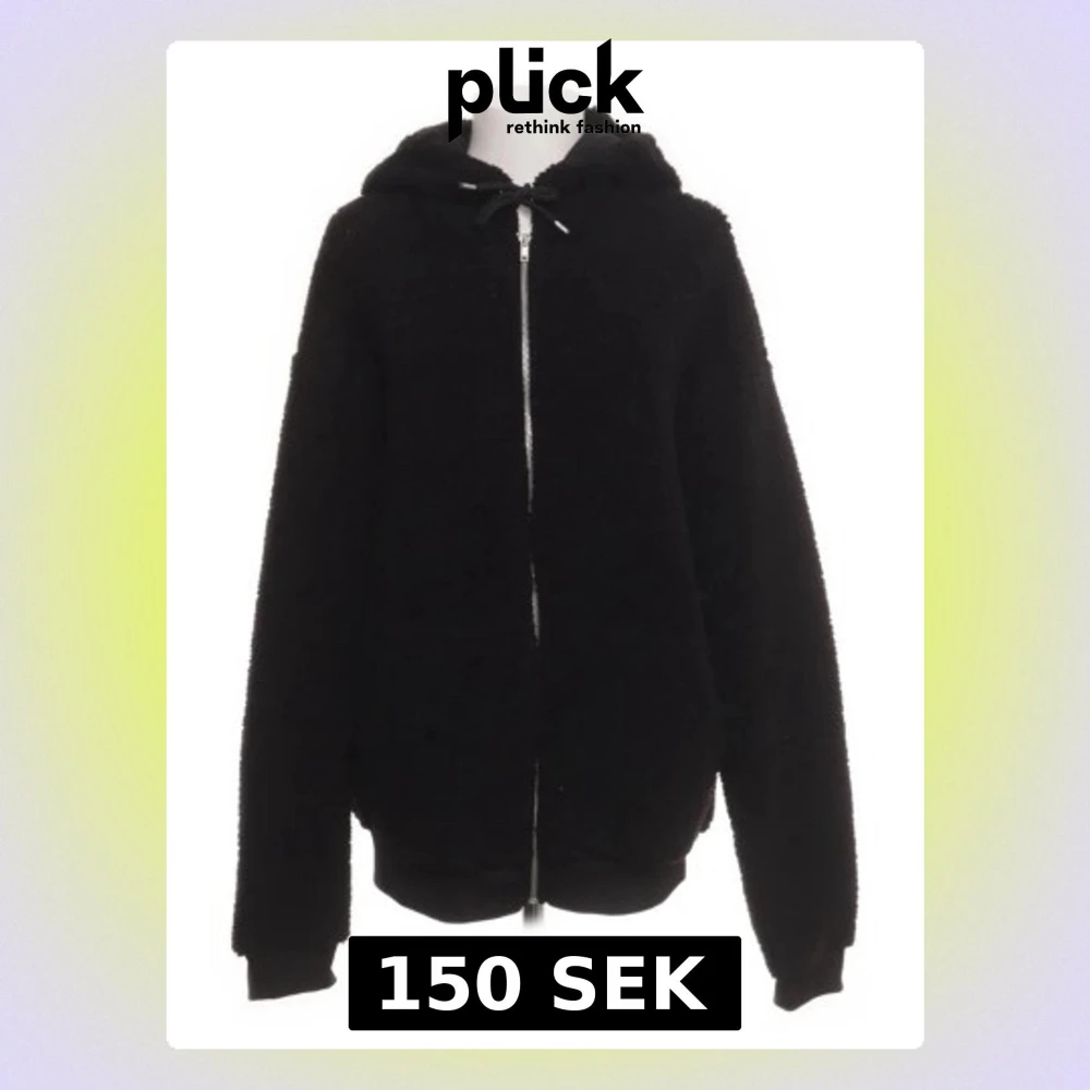 Svart teddyjacka med luva och dragkedja, m/l