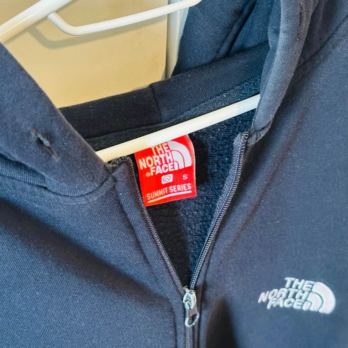 Säljer en svart hoodie från The North Face Summit Series med dragkedja och huva. Tröjan har två fickor framtill och logga på bröstet. Perfekt för dig som gillar enkel och sportig stil.