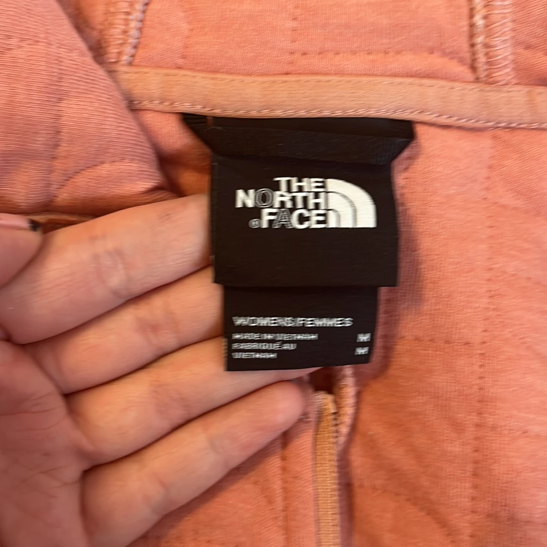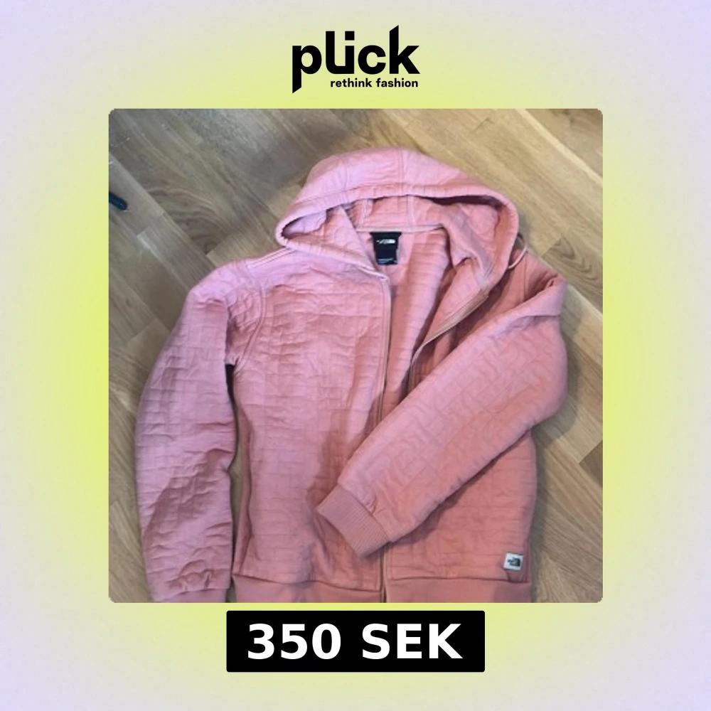 Säljer en rosa hoodie från The North Face i storlek M. Tröjan har huva med snörning, dragkedja framtill och ribbade muddar. Materialet är quiltat och känns mjukt och skönt. Perfekt för kyliga dagar när du vill vara både bekväm och snygg.