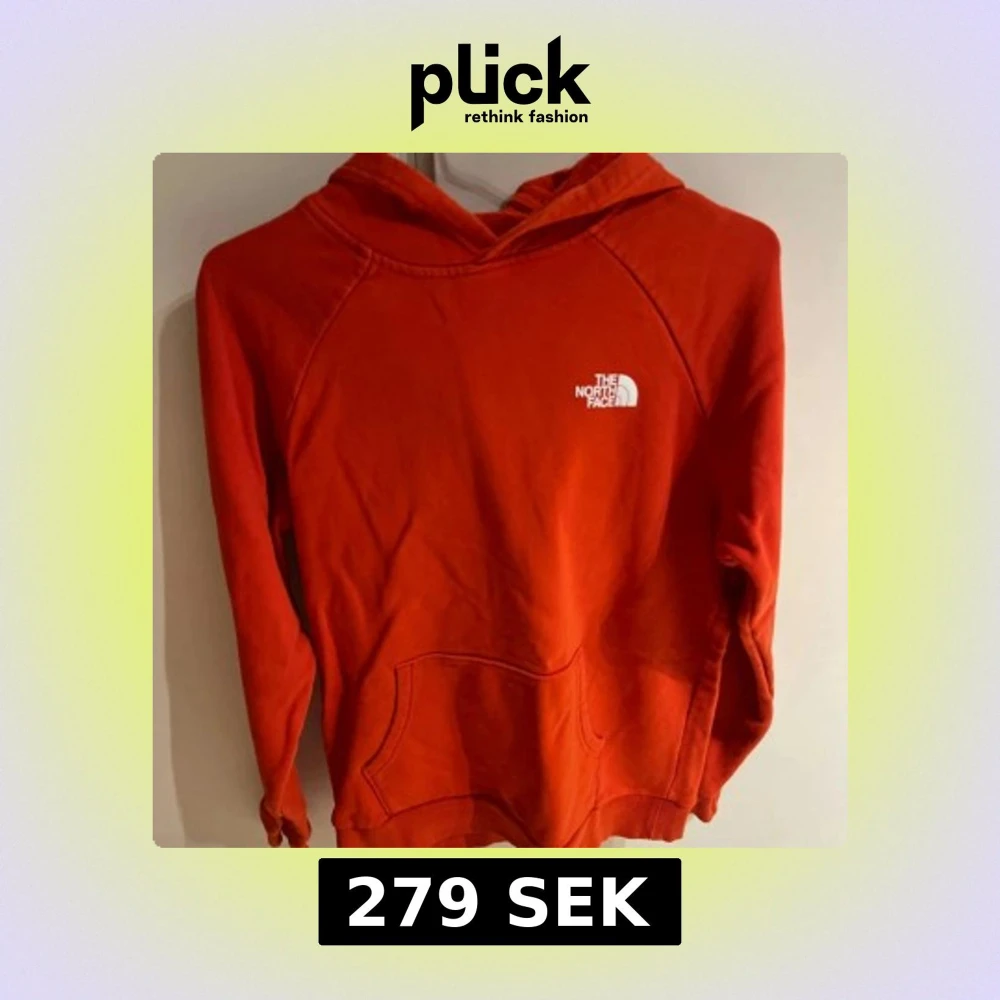 Snygg röd hoodie från The North Face med vit logga på bröstet och stor logga med texten 'Never Stop Exploring' på ryggen. Tröjan har huva, magficka och ribbade muddar. Perfekt för dig som gillar streetwear och vill sticka ut.