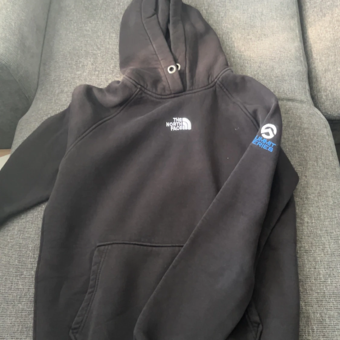 Säljer en svart hoodie från The North Face med logga på bröstet och ärmen. Köpt för ungefär 3-4 månader sedan. Storlek M