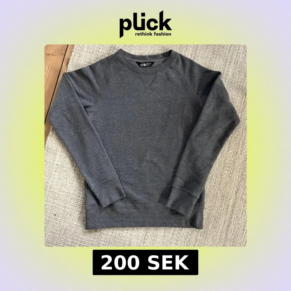 Säljer en stilren grå tröja från The North Face. Tröjan har en klassisk design med rund hals och långa ärmar. Perfekt för en avslappnad look.