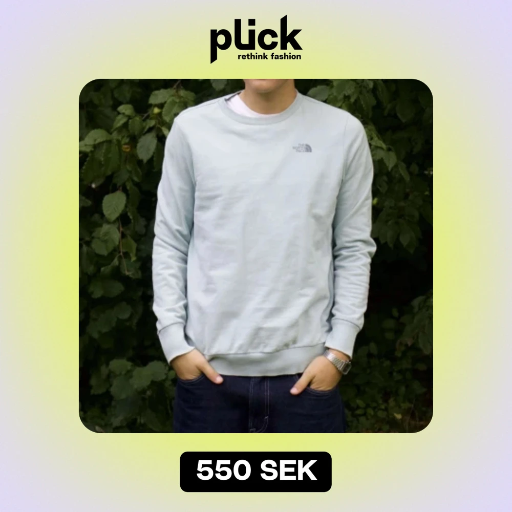 Riktigt schysst the North Face tröja i fin ljusblå färg. Modellen är 182 cm / skick nio av tio