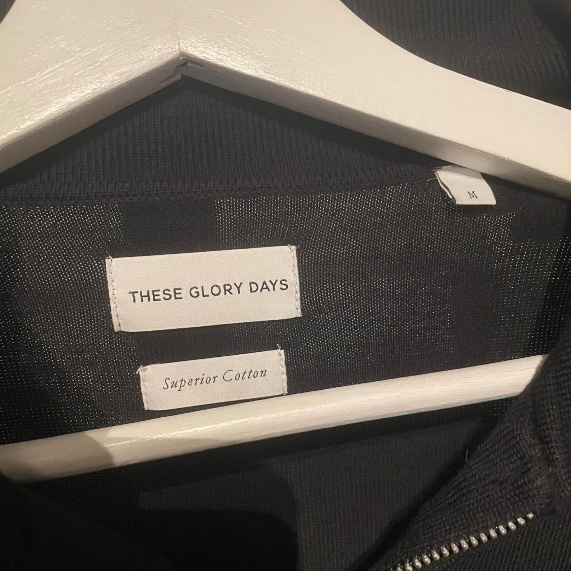 Svart långärmad tröja från These Glory Days i mjuk bomull. Klassisk krage och snygg half zip-dragkedja framtill. Perfekt för dig som gillar stilren och enkel design med en modern touch.