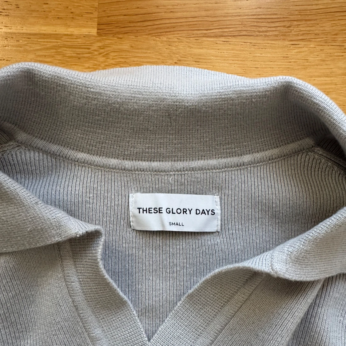 Säljer en stilren ljusgrå pikétröja från These Glory Days. Tröjan har klassisk krage, v-ringning och är långärmad. Tillverkad i mjukt stickat material som känns skönt mot huden. Perfekt för dig som gillar en clean och enkel look.