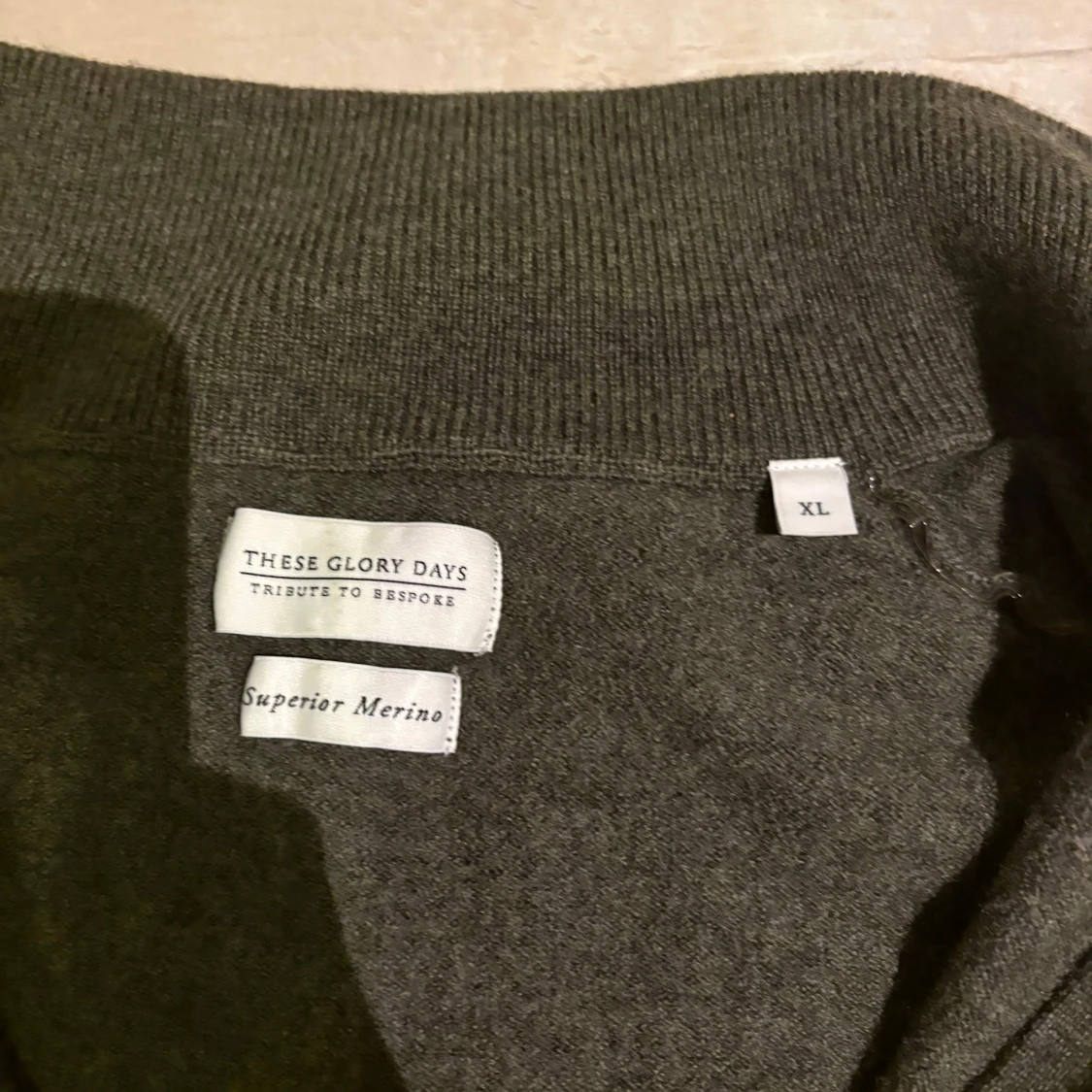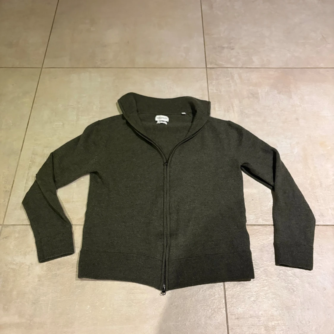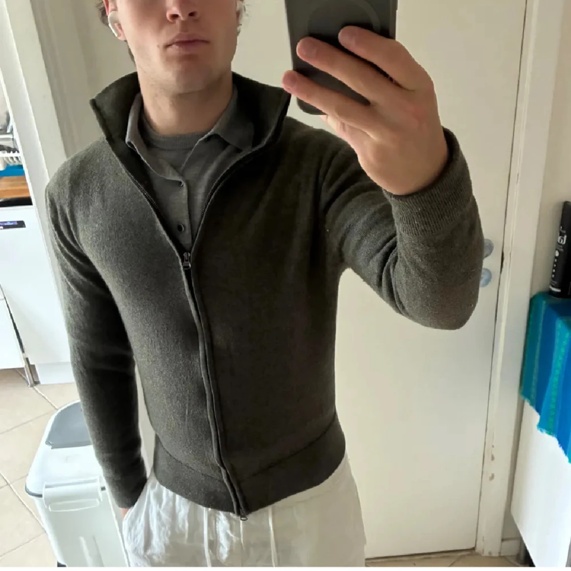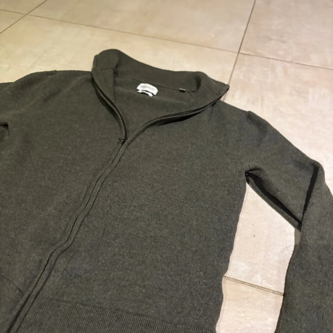 Säljer en olivgrön kofta från These Glory Days i mjuk och lyxig merinoull. Koftan har hel dragkedja framtill, ribbade muddar och en stilren, enkel design. Det är storlek XL men den har krympt så den är ungefär som XS. Kan ha tappat formen lite men inte helt säker då den inte passar mig. Sista bilden är en gammal bild innan den krympte.