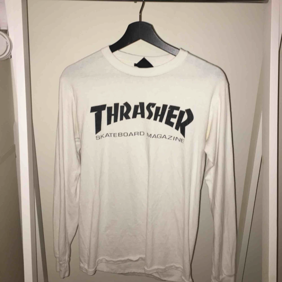 Vit thrasher långärmad. Har en fläck från brun utan sol, därav det billiga priset!
