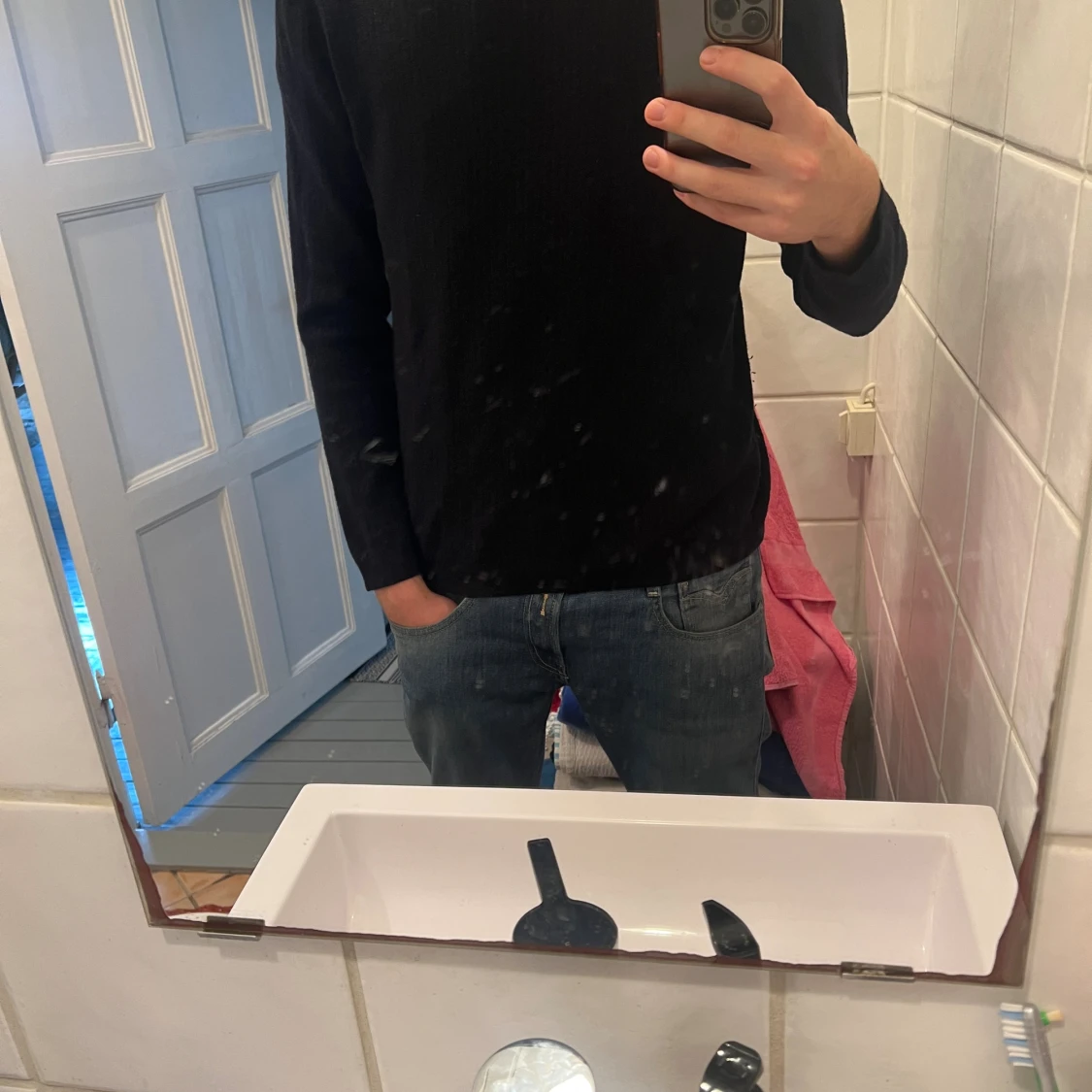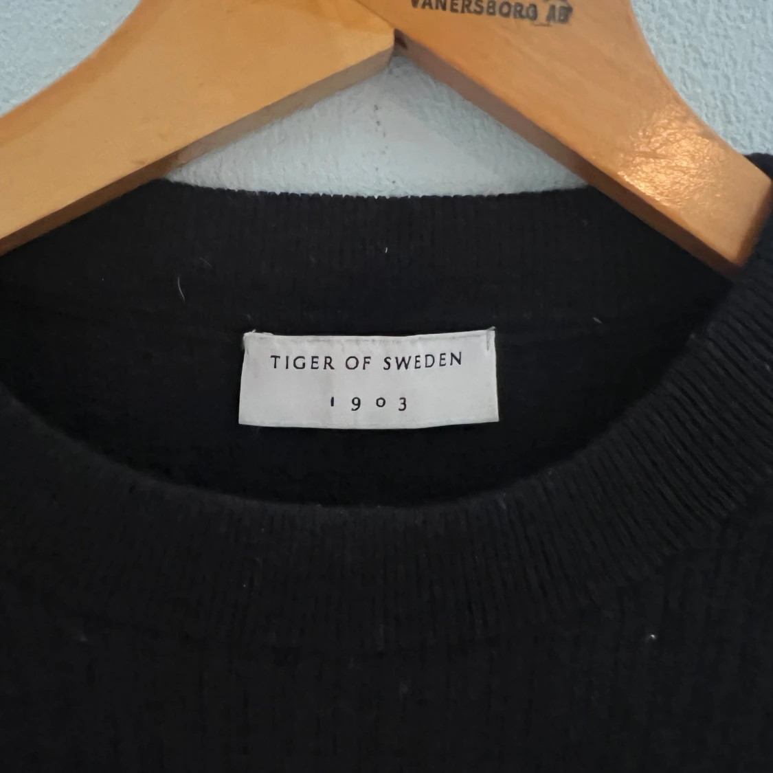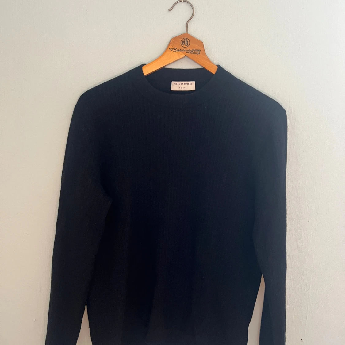 Mörkblå stickad tröja i merinoull från tiger of Sweden. Tröjan är i stl M. Mycket bra skick och inga större täcken på användning. Säljer pga att den är för kort. Personen på bilden är 188 och har stl M. Bara att höra av sig vid frågor.