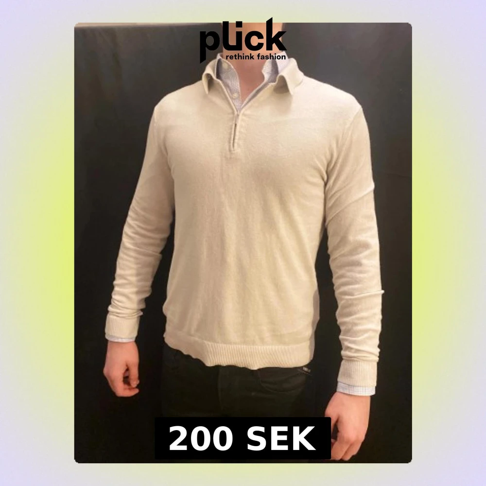Snygg beige stickad tröja från Tiger of Sweden i storlek S. Tröjan har krage, half zip och broderad detalj med '1903' vid nederkanten. Ribbad mudd vid ärmslut och nederkant, perfekt för dig som gillar stilrena och klassiska plagg.