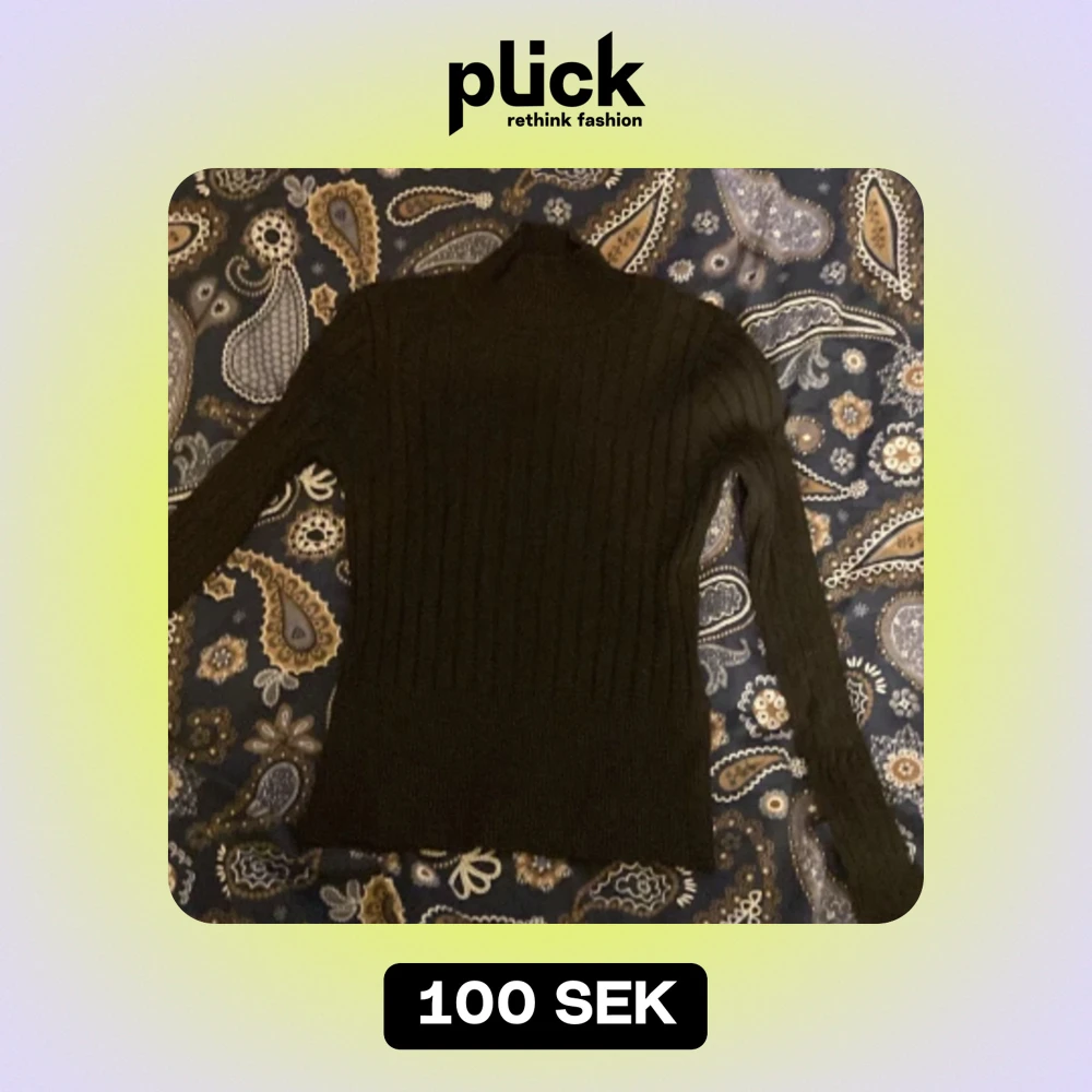 Detta är ett plagg som sitter tight mot kroppen och har en liten polokrage. Den har även ett slags ribbat mönster. Tröjan är i bra skick!