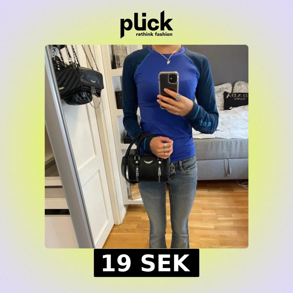 Tight långärmad träningströja med mörkblå ärmar. Snygg passform som följer kroppen och perfekt för träning. Passar Xs.