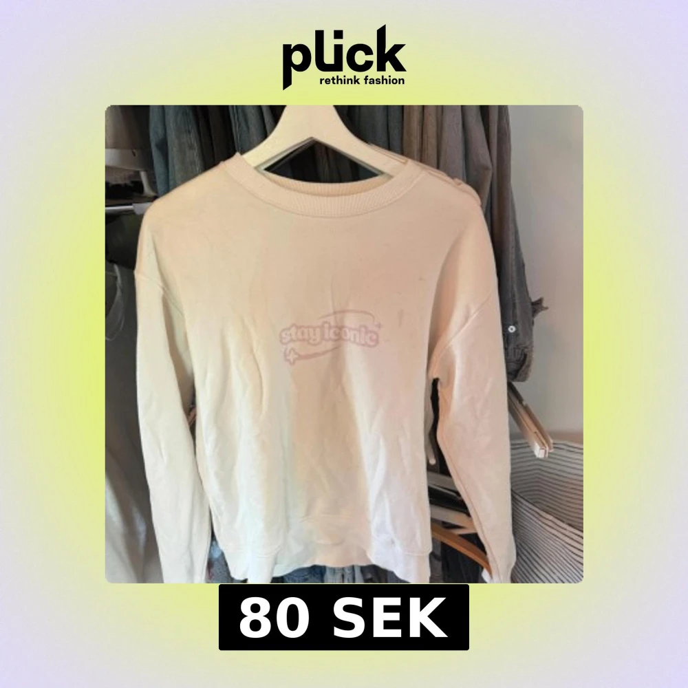 Vit sweatshirt med trycket 'stay iconic' i ljusrosa på bröstet. Tröjan är merch av Tilda Törnqvist Tröjan har rund halsringning och långa ärmar. Mjuk och skön, perfekt för en chill look. Passar dig som gillar enkel men trendig stil. Tröjan köptes för 2-3 år sedan och har används 1 gång! Har tyvärr ingen lapp i med storlek men skulle tro att det är storlek S! På bild 3 ser man att det är en liten fläck som tyvärr inte gått bort.