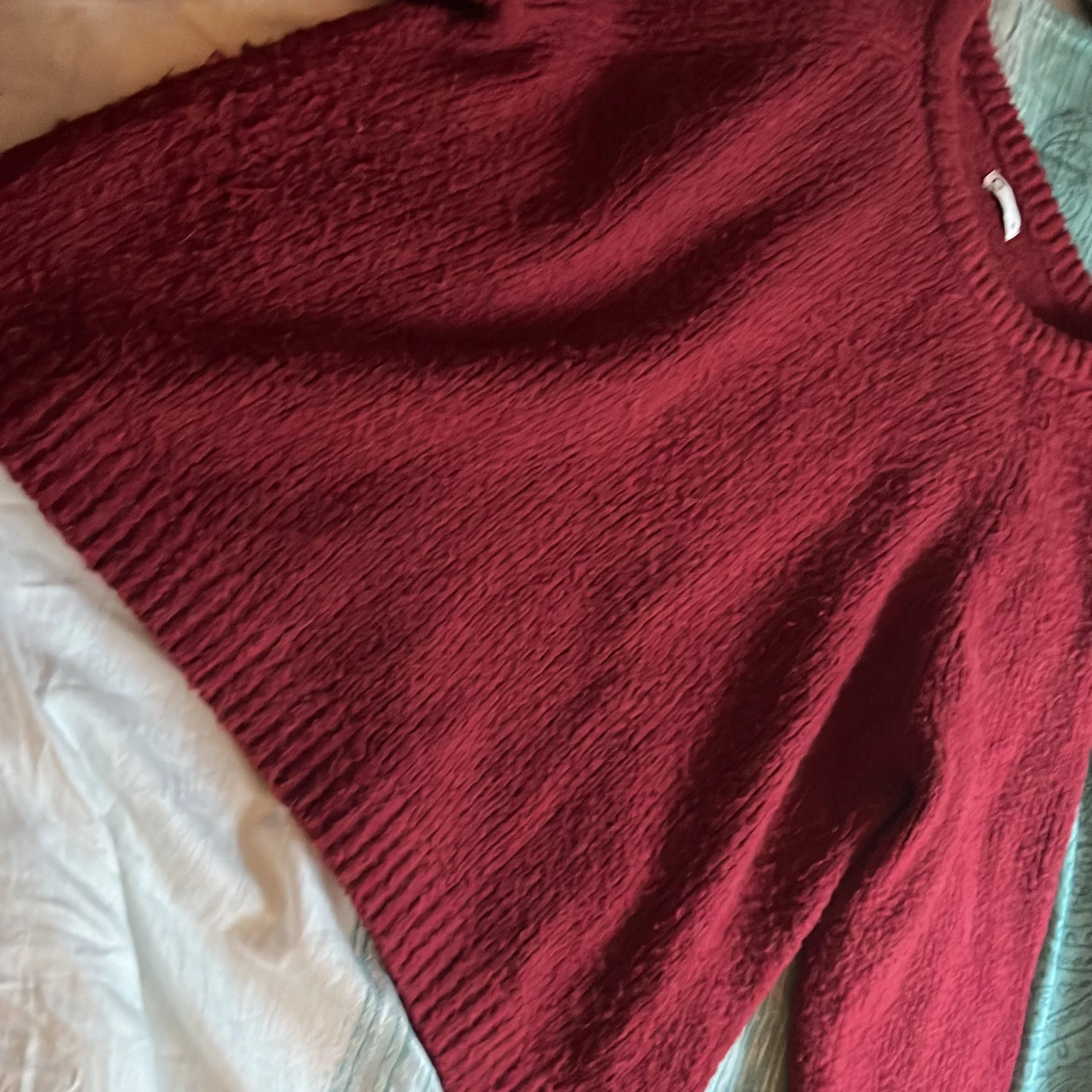 Mysig vinröd stickad tröja med rund hals och långa ärmar. Tröjan har en enkel design med ribbade muddar vid hals, ärmslut och nederkant. Perfekt för dig som gillar en chill och klassisk look under kyliga dagar.