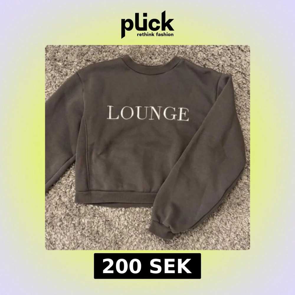 Säljer en brun croppad sweatshirt från Lounge med text på framsidan. Tröjan har långa ärmar och en bekväm passform. Perfekt för en avslappnad stil.