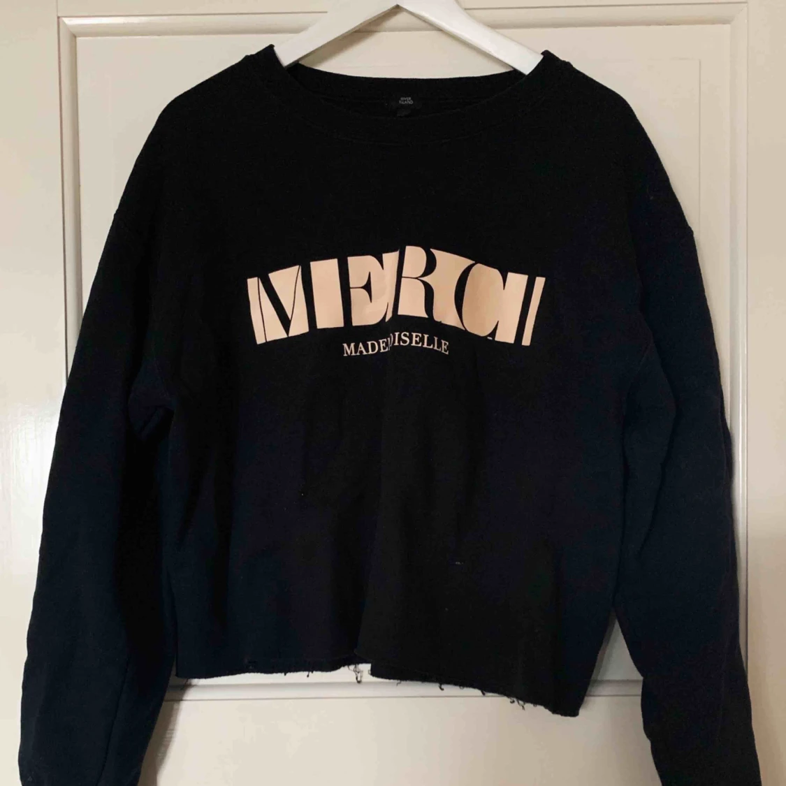 Marinblå sweatshirt från River Island. Ljusrosa tryck på framsidan, bekvämt material. Fler bilder kan skickas frakt ingår ej.