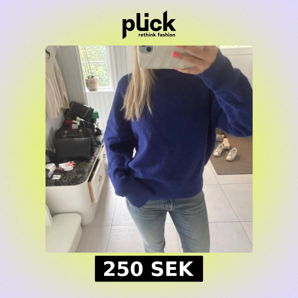 Mysig blå stickad tröja i bra skick perfekt till hösten💙🤎
