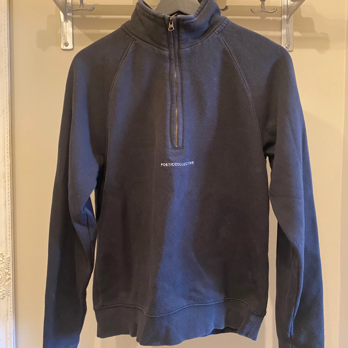 Svart tröja från Poetic Collective med halv dragkedja och ett abstrakt vitt broderat mönster på ryggen 🤍🖤