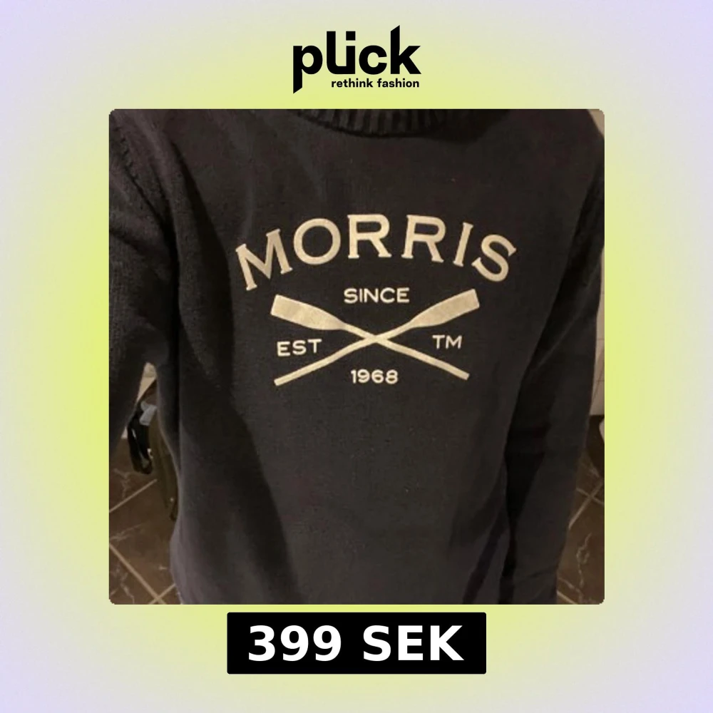 Snygg mörkblå stickad tröja från Morris R. Club med vit broderad logga och korsade åror framtill. Tröjan har rund halsringning och långa ärmar, perfekt för dig som gillar klassisk och sportig stil.