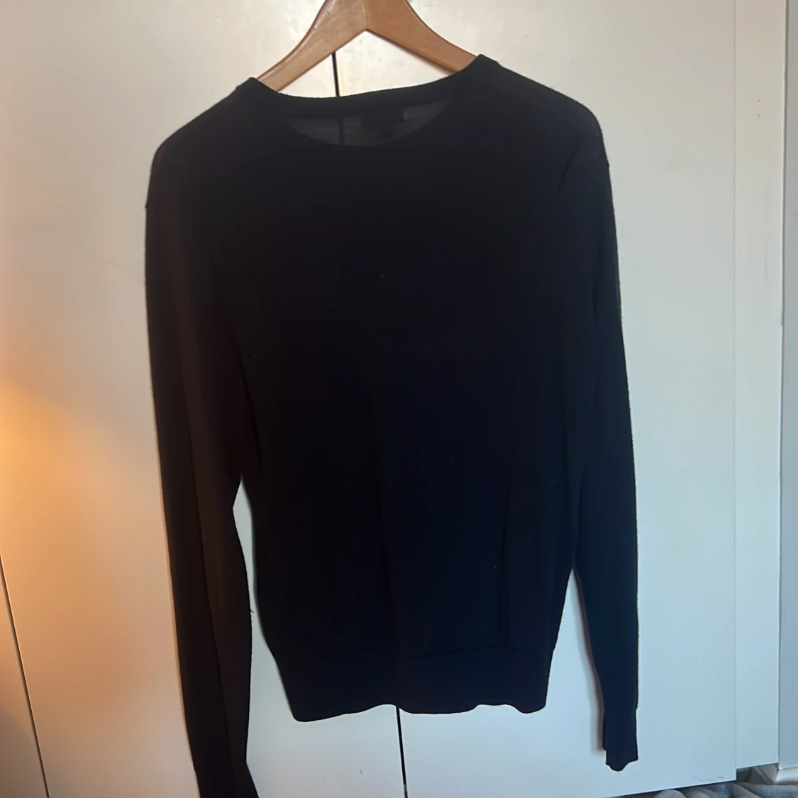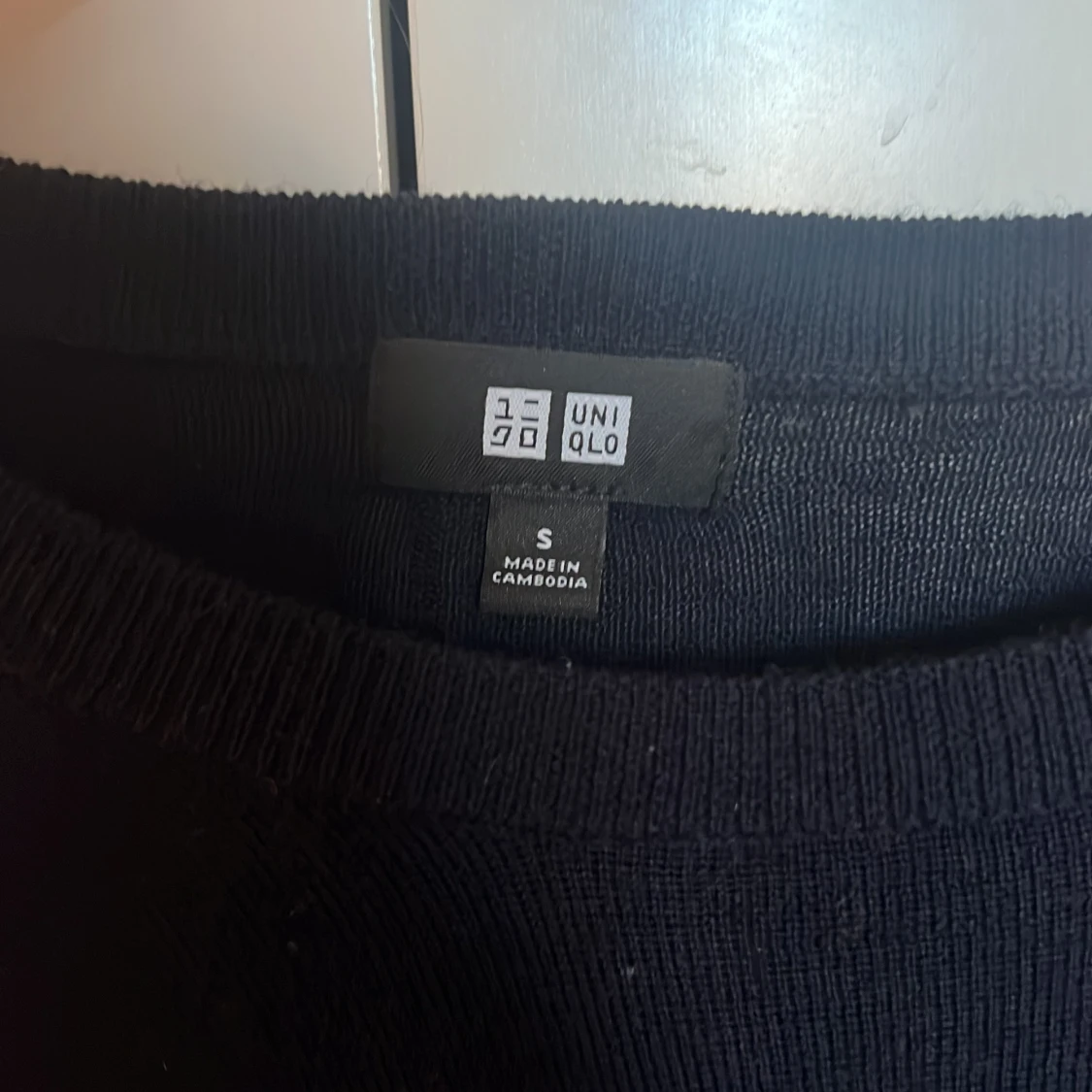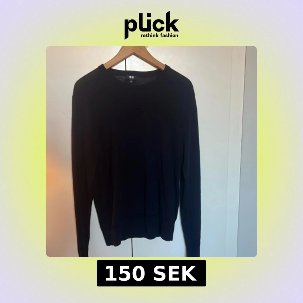 En stilren marinblå stickad tröja från Uniqlo i storlek S. Tröjan har rund halsringning och långa ärmar, perfekt för lager-på-lager eller som den är. Enkel och klassisk design som funkar till det mesta.