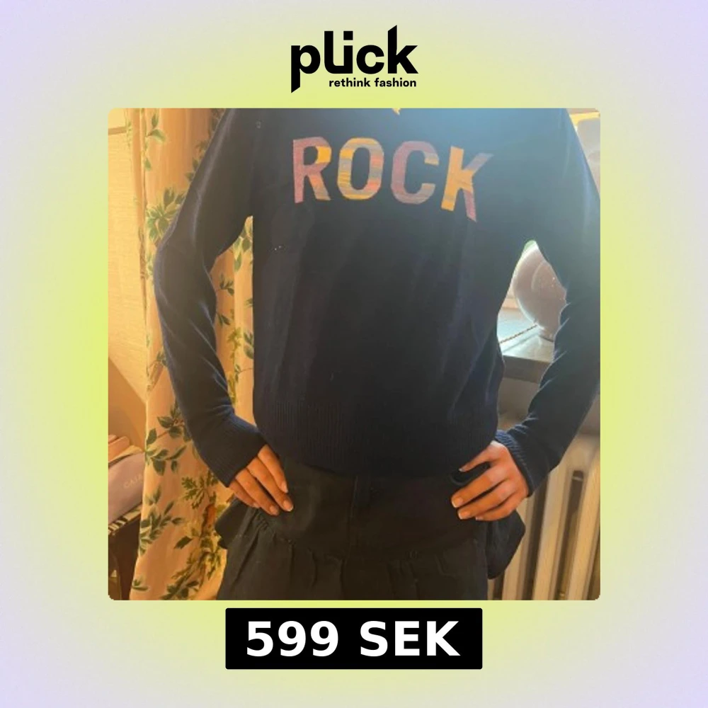 Snygg mörkblå stickad tröja från Zadig&Voltaire!💞med färgglatt 'ROCK'-tryck i rosa, gul och grå toner på bröstet. Rund hals och långa ärmar. Storlek=XS och är knappt använd!💞