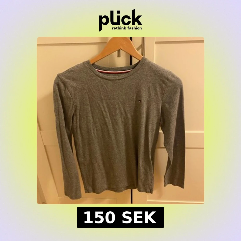 Snygg grå långärmad tröja från Tommy Hilfiger med diskret logga på bröstet. Klassisk rund halsringning med röd, vit och marinblå detalj på insidan av kragen. Perfekt basic-plagg för en clean och stilren look.