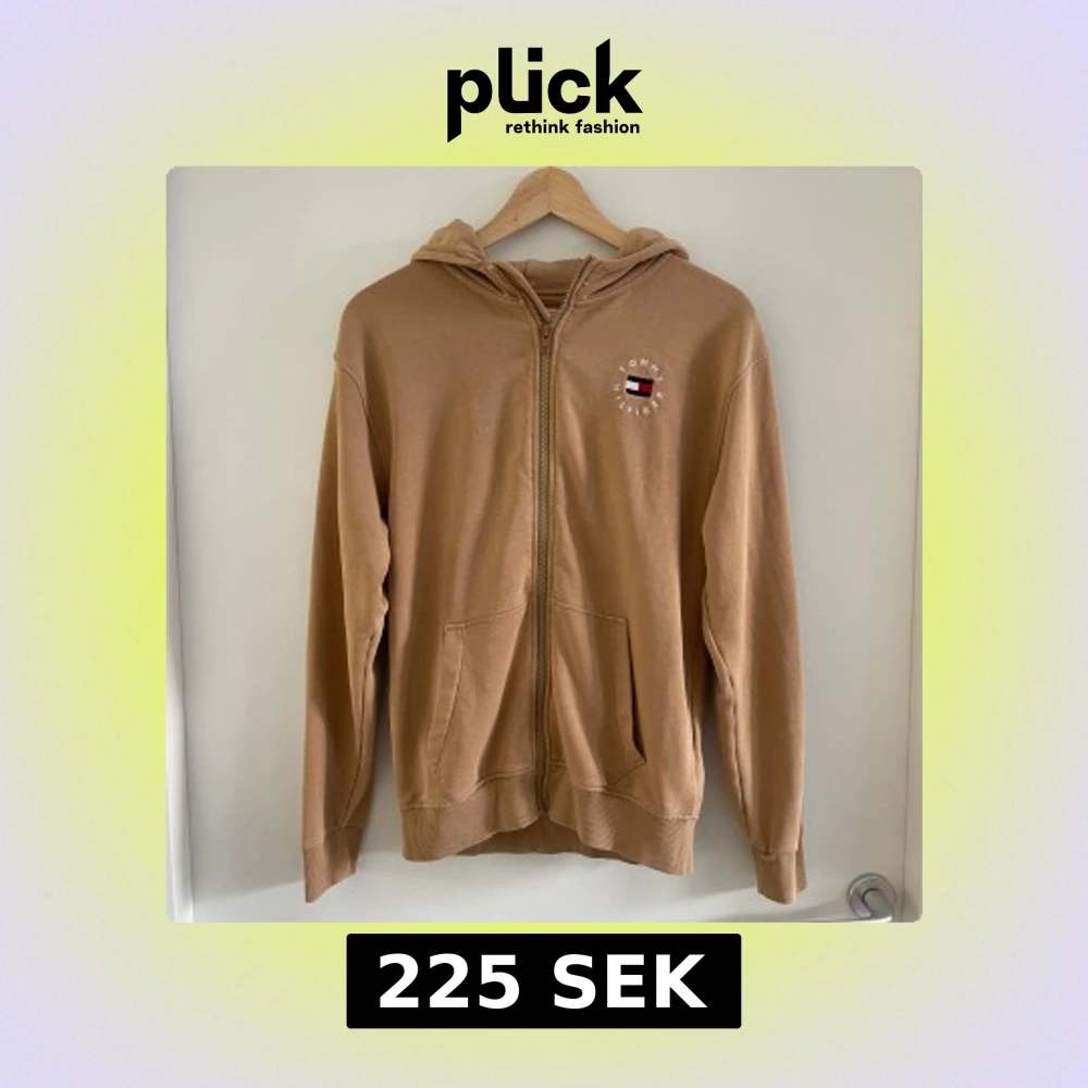 Snygg beige hoodie från Tommy Hilfiger med dragkedja, huva och klassisk logga broderad på bröstet. Tröjan har ribbade muddar, kängurufickor och en cool randig detalj på huvan. Perfekt för en chill och stilren look.