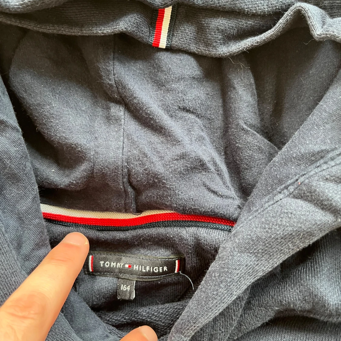 Snygg marinblå hoodie från Tommy Hilfiger med klassisk logga och broderad text framtill. Tröjan har huva, känguruficka och långa ärmar. Perfekt för dig som gillar streetwear och vill ha en stilren look.