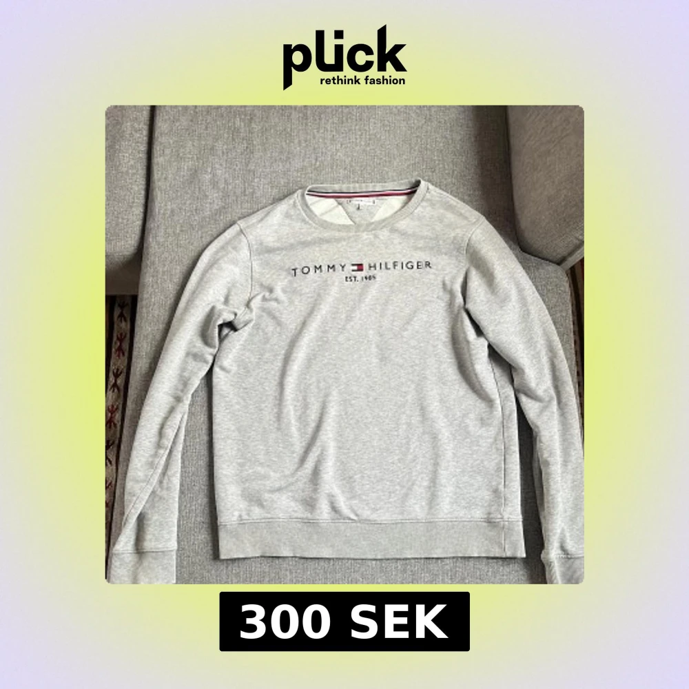Säljer en ljusgrå sweatshirt från Tommy. Klassisk och stilren design med diskret flagga på ärmen.