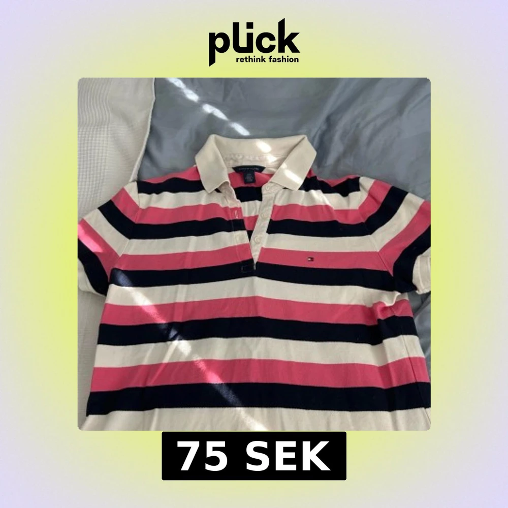Säljer en klassisk pikétröja från Tommy Hilfiger med breda ränder i rosa, marinblått och vitt. Tröjan har krage, knappar framtill och korta ärmar. Perfekt för en sportig och stilren look! Pris kan diskuteras