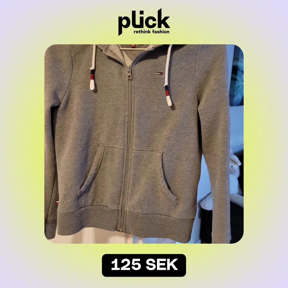 Säljer en snygg och bekväm grå hoodie från Tommy Hilfiger Denim i storlek XXS. Den har en dragkedja framtill och praktiska fickor. Perfekt för en avslappnad stil och passar bra till både jeans och leggings. Huvan har justerbara snören med färgdetaljer. 🩶