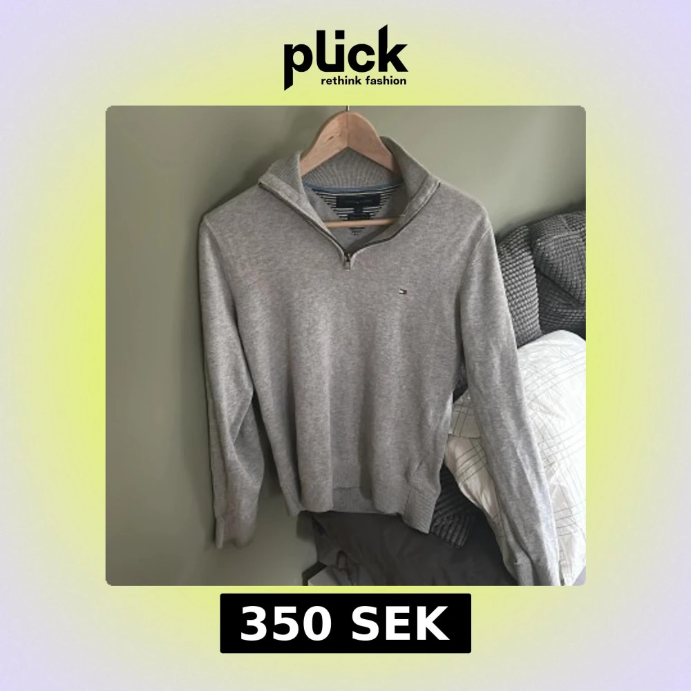 Snygg grå tröja från Tommy Hilfiger med halv dragkedja och liten logga på bröstet. Tröjan har ribbade muddar och krage, perfekt för lager-på-lager. Tillverkad i bomull för en mjuk och bekväm känsla.