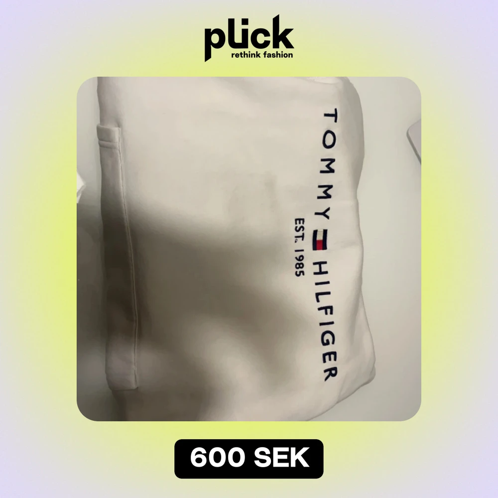 Säljer en snygg vit hoodie från Tommy Hilfiger i storlek L. Den är gjord av ekologisk bomull och har en klassisk design med logotypen tryckt på framsidan. Perfekt för en avslappnad stil och passar till alla årstider. 🕶️