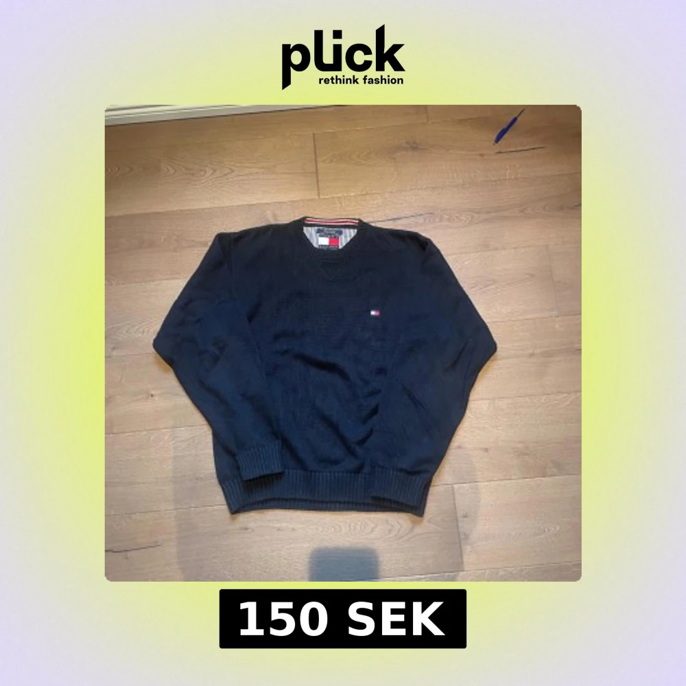 Snygg mörkblå stickad tröja från Tommy Hilfiger med klassisk rund hals och diskret logga broderad på bröstet. Tröjan är gjord i 100% bomull och har ribbade muddar vid ärmslut och nederkant. Perfekt för dig som gillar stilrena och tidlösa plagg.